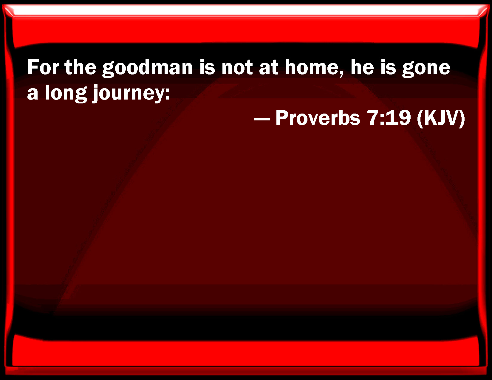 Proverbs 7:19 For the manager is not at home, he is gone a long journey: