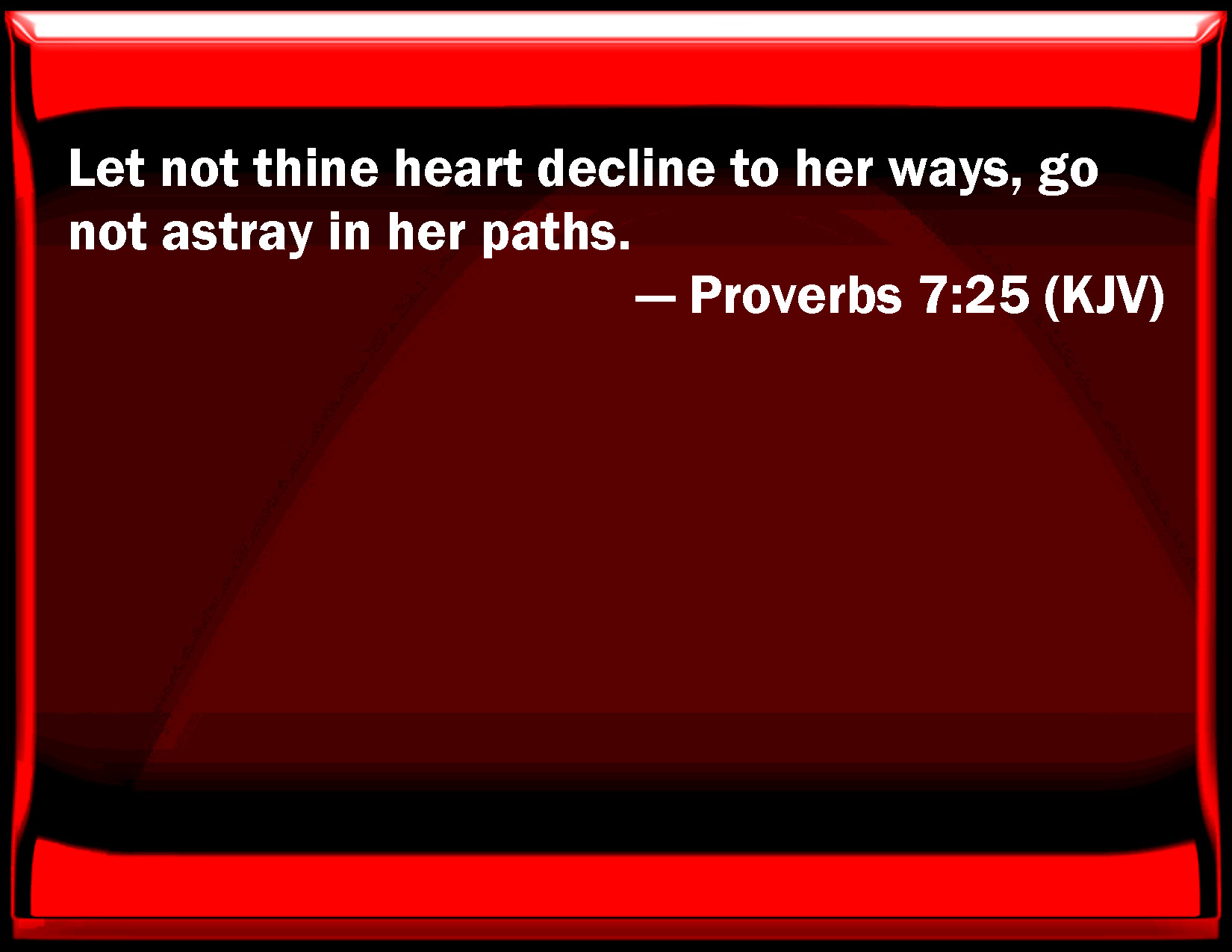 Proverbs 7:25 Let not your heart decline to her ways, go not astray in her paths.