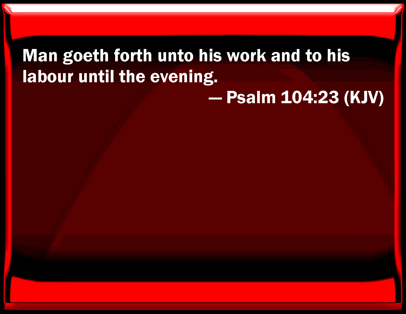 Psalm 104:23 Man goes forth to his work and to his labor until the evening.