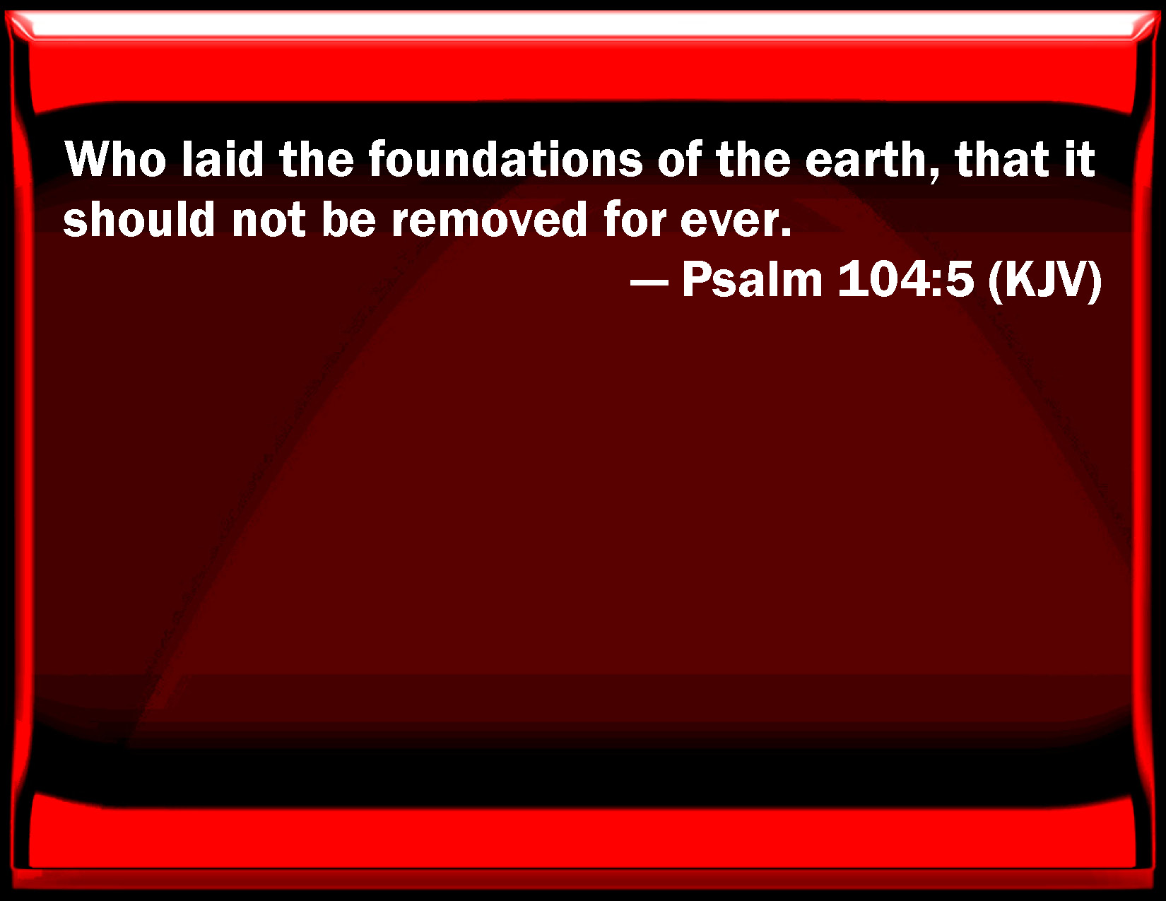 Psalm 104:5 Who laid the foundations of the earth, that it should not be removed for ever.