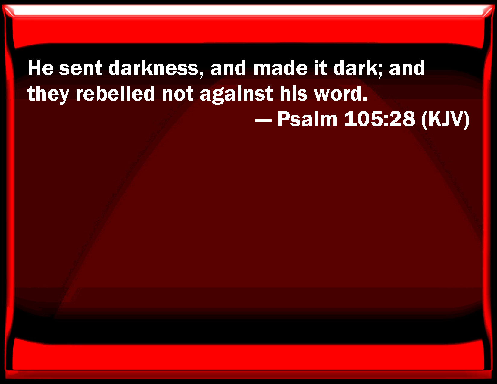 Psalm 105:28 He sent darkness, and made it dark; and they rebelled not against his word.