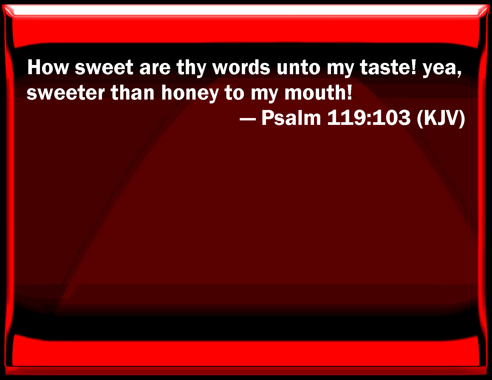 Psalm 119:103 How sweet are your words to my taste! yes, sweeter than honey to my mouth!