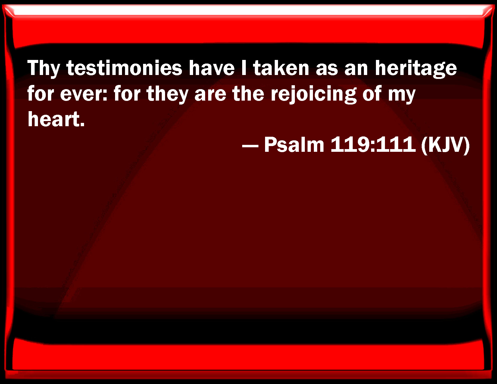 Thy testimonies have I taken as an heritage for ever: for they are the rejoicing of my heart.