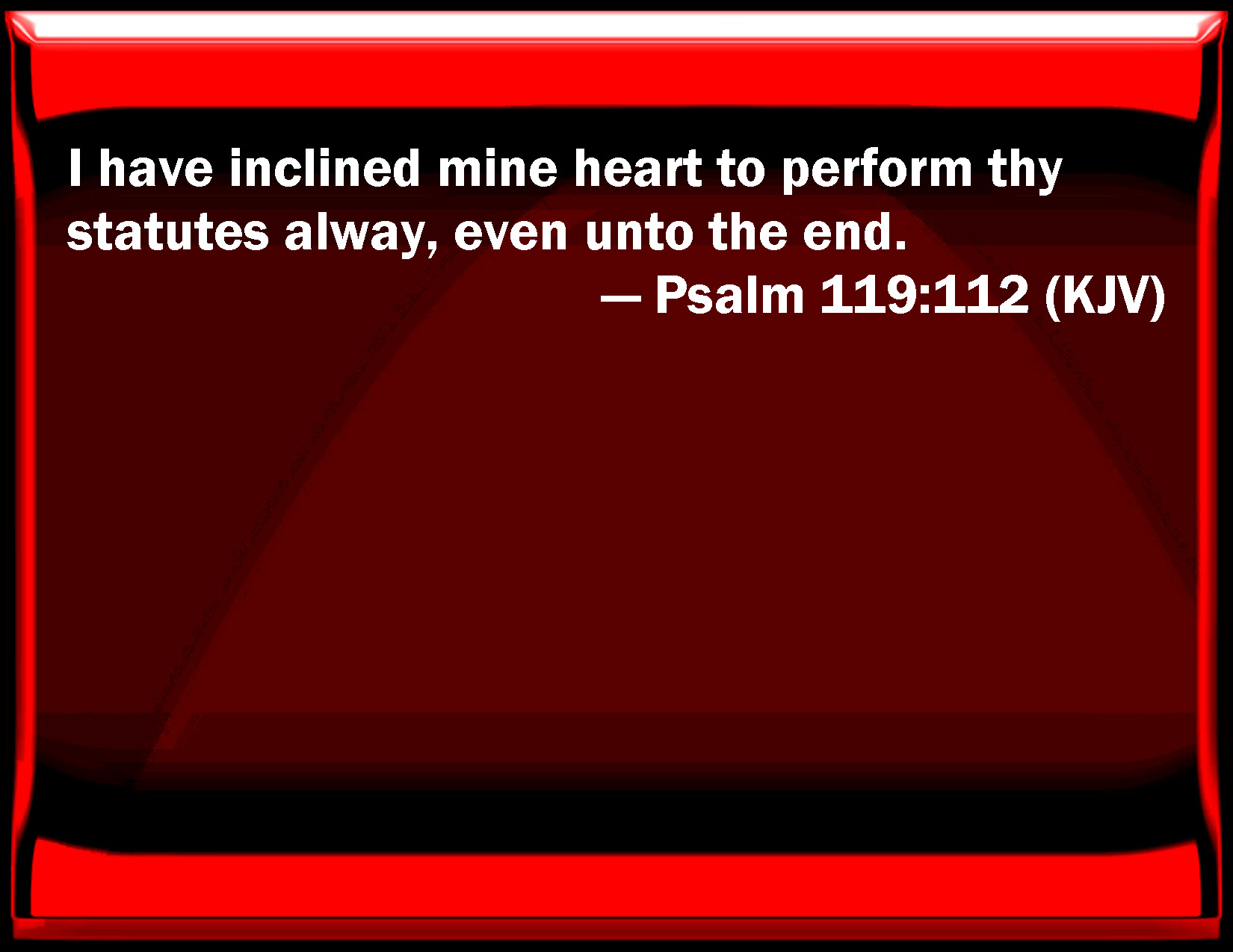 Psalm 119:112 I have inclined my heart to perform your statutes always, even to the end.