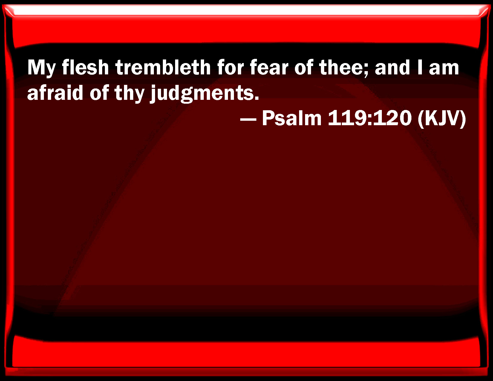 Psalm 119:120 My flesh trembles for fear of you; and I am afraid of your judgments.