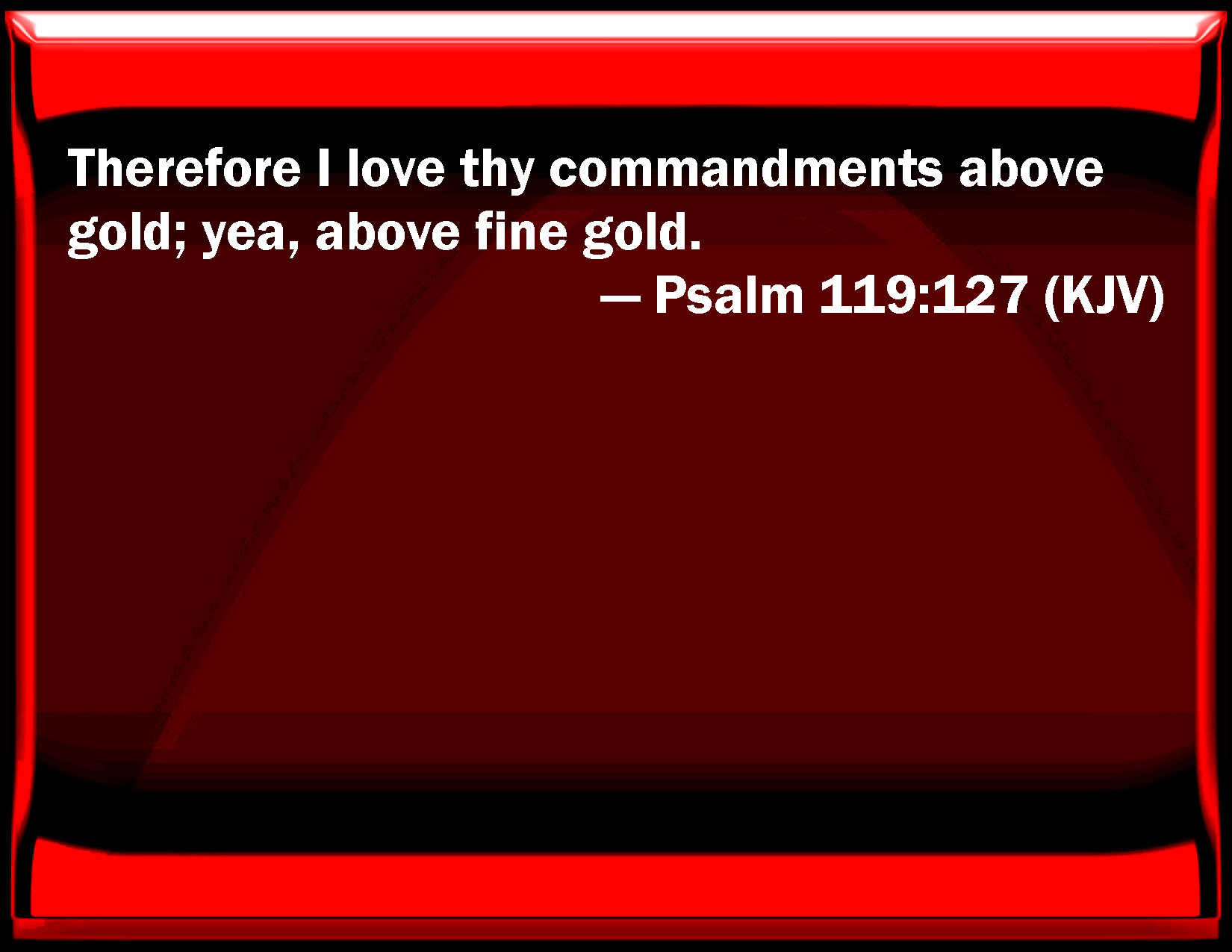 Therefore I love thy commandments above gold; yea, above fine gold.