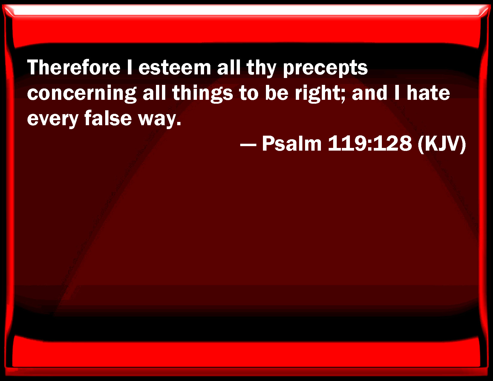 Psalm 119:128 Therefore I esteem all your precepts concerning all things to be right; and I hate every false way.