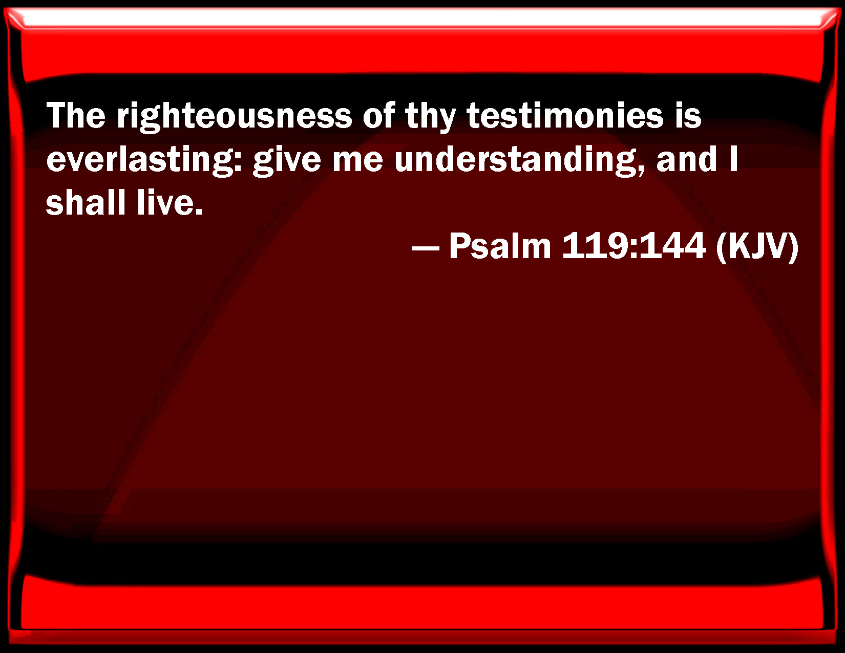 Psalm 119:144 The righteousness of your testimonies is everlasting: give me understanding, and I shall live.