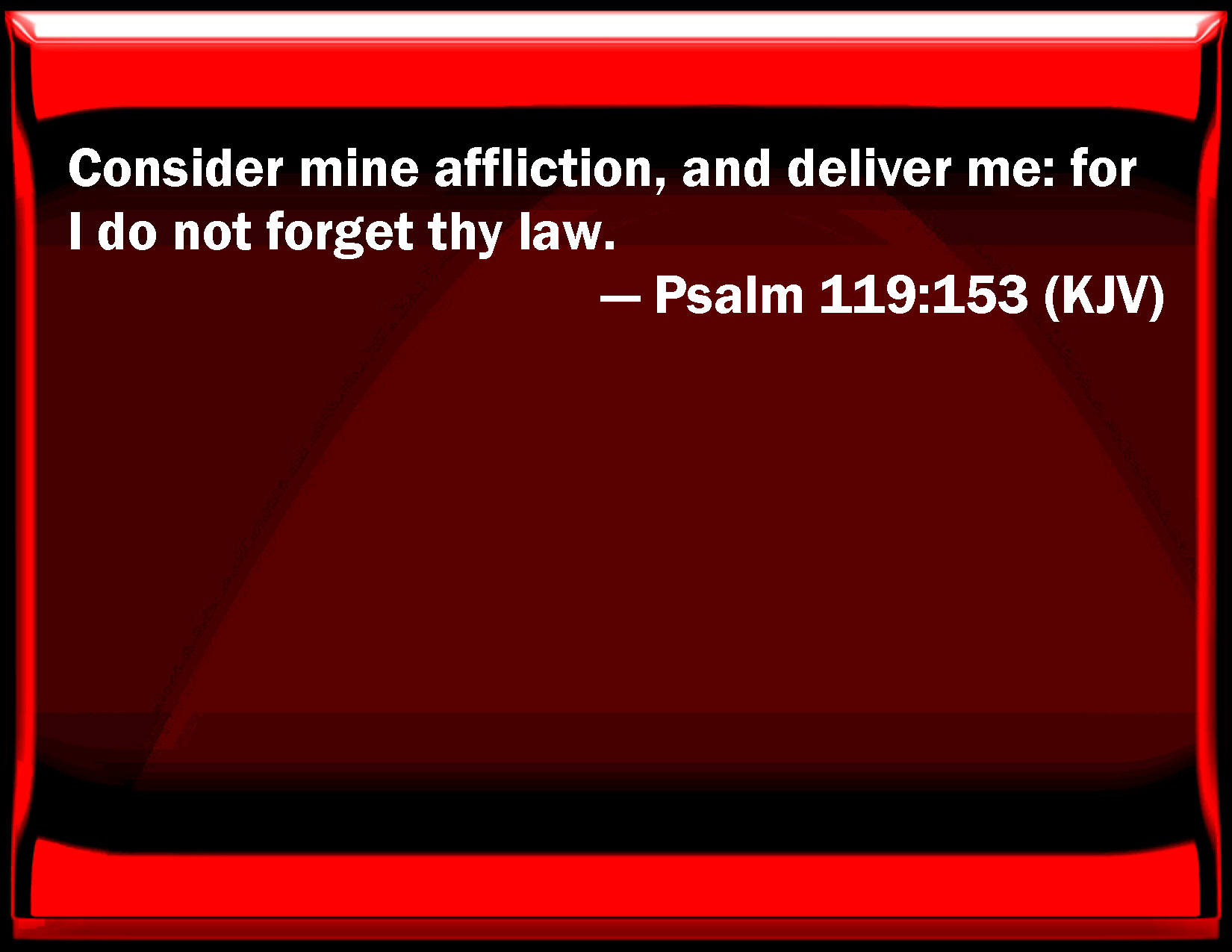 Psalm 119:153 Consider my affliction, and deliver me: for I do not forget your law.
