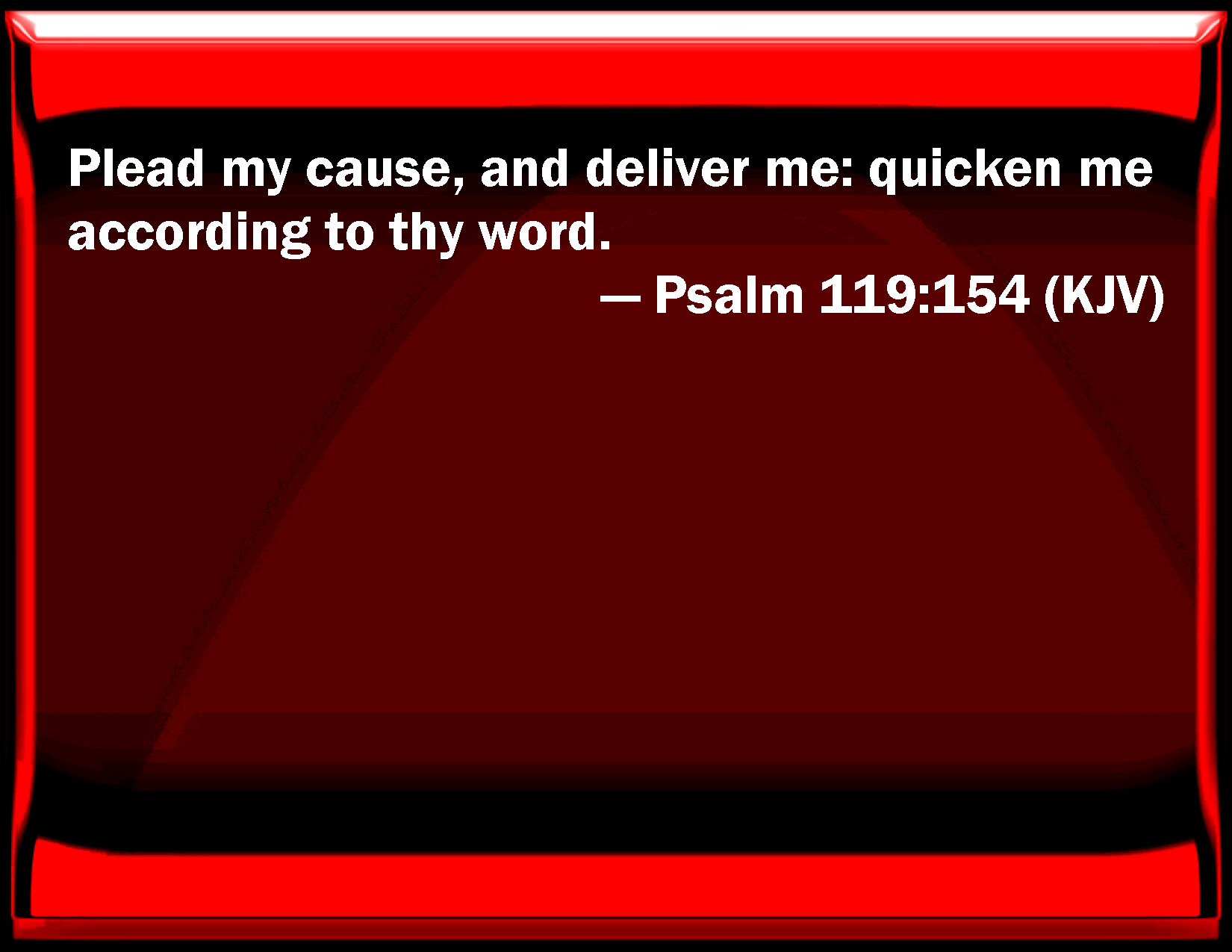 Psalm 119:154 Plead my cause, and deliver me: quicken me according to your word.