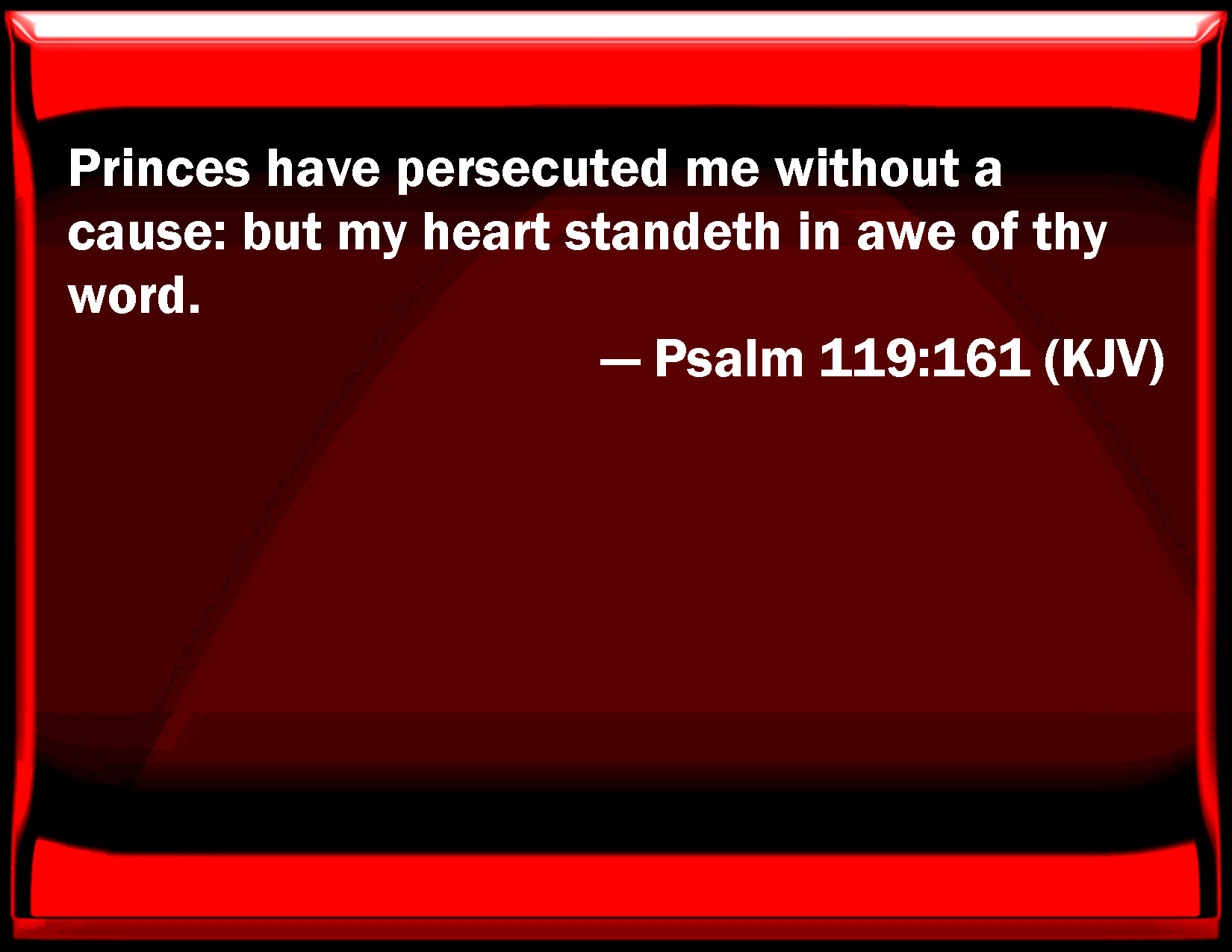 Psalm 119:161 Princes have persecuted me without a cause: but my heart stands in awe of your word.