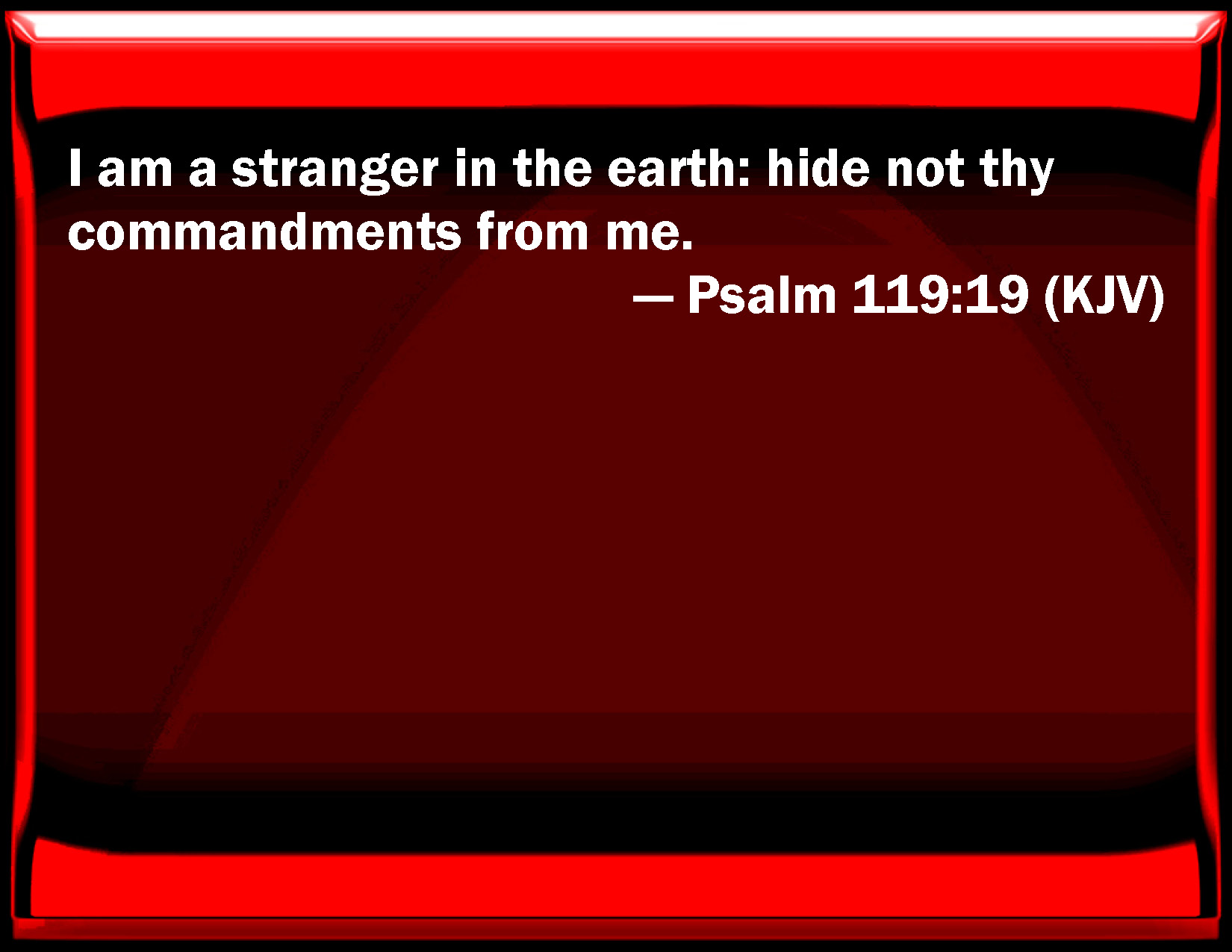 Psalm 119:19 I am a stranger in the earth: hide not your commandments from me.