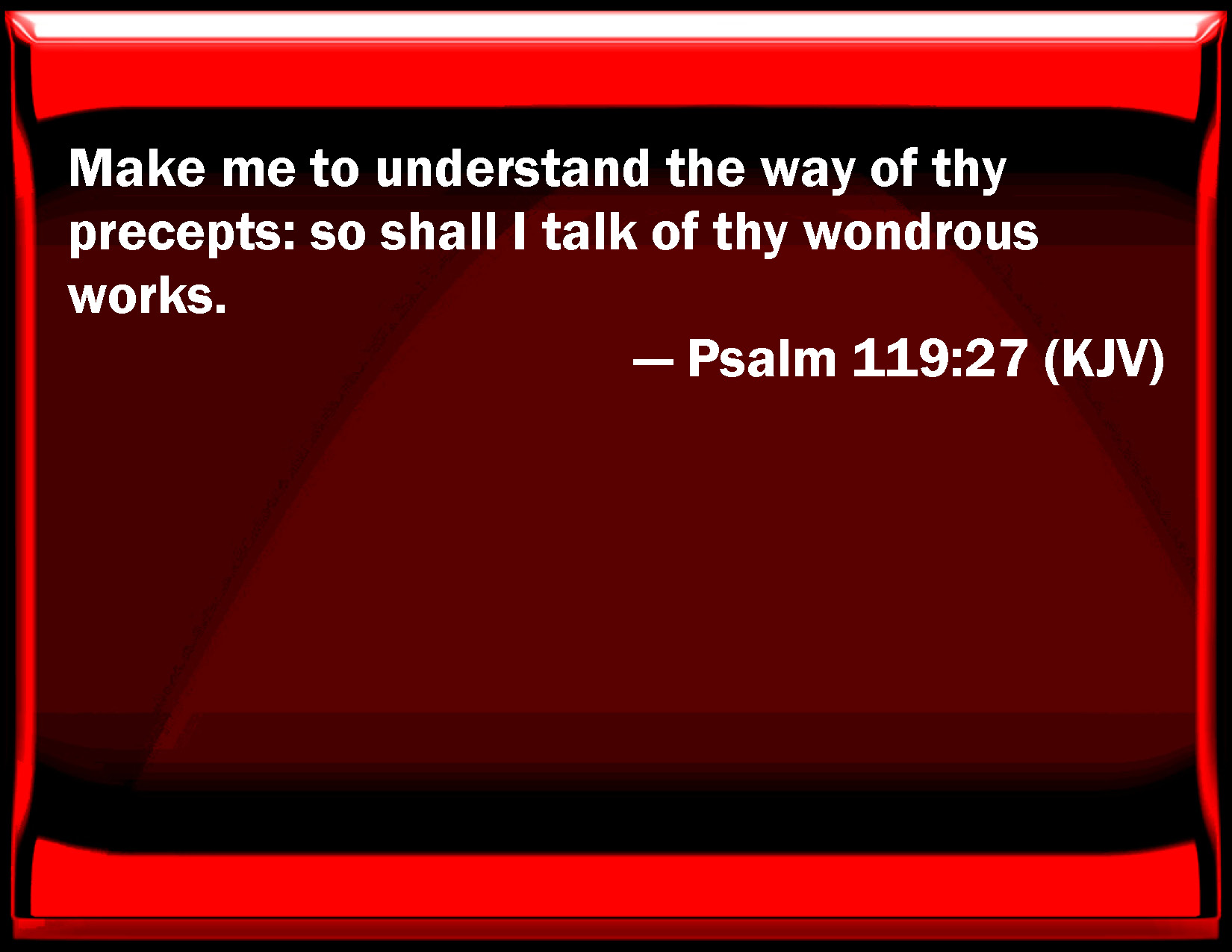 Make me to understand the way of thy precepts: so shall I meditate of thy wondrous works.