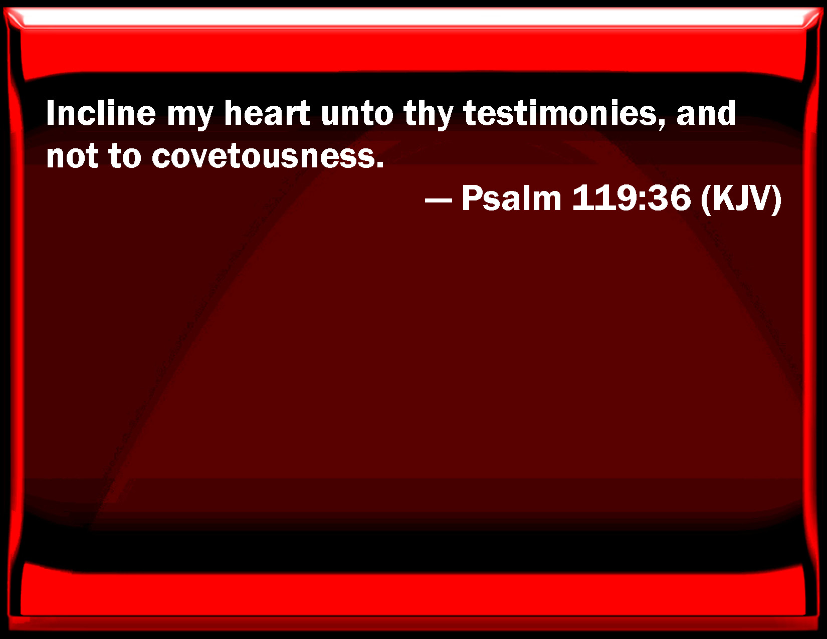 Psalm 119:36 Incline my heart to your testimonies, and not to covetousness.