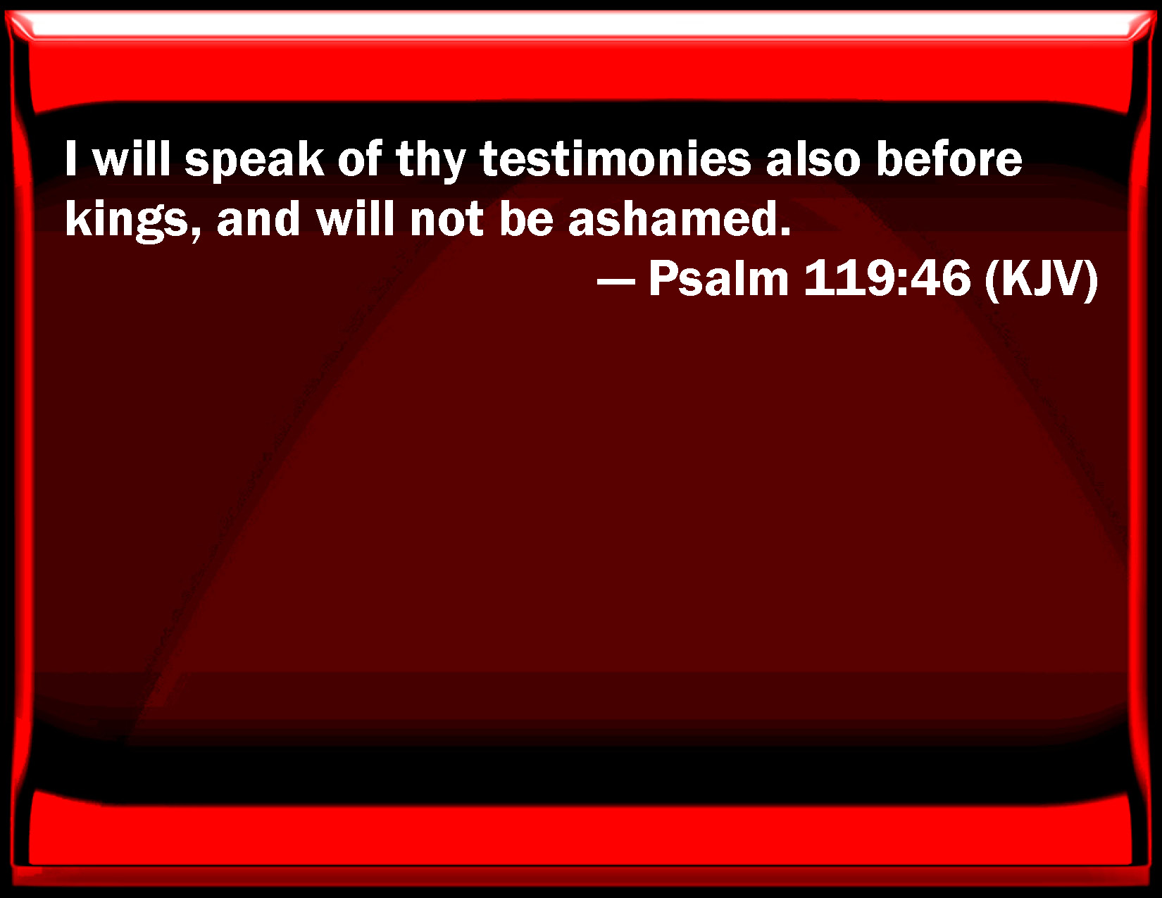Psalm 119:46 I will speak of your testimonies also before kings, and will not be ashamed.