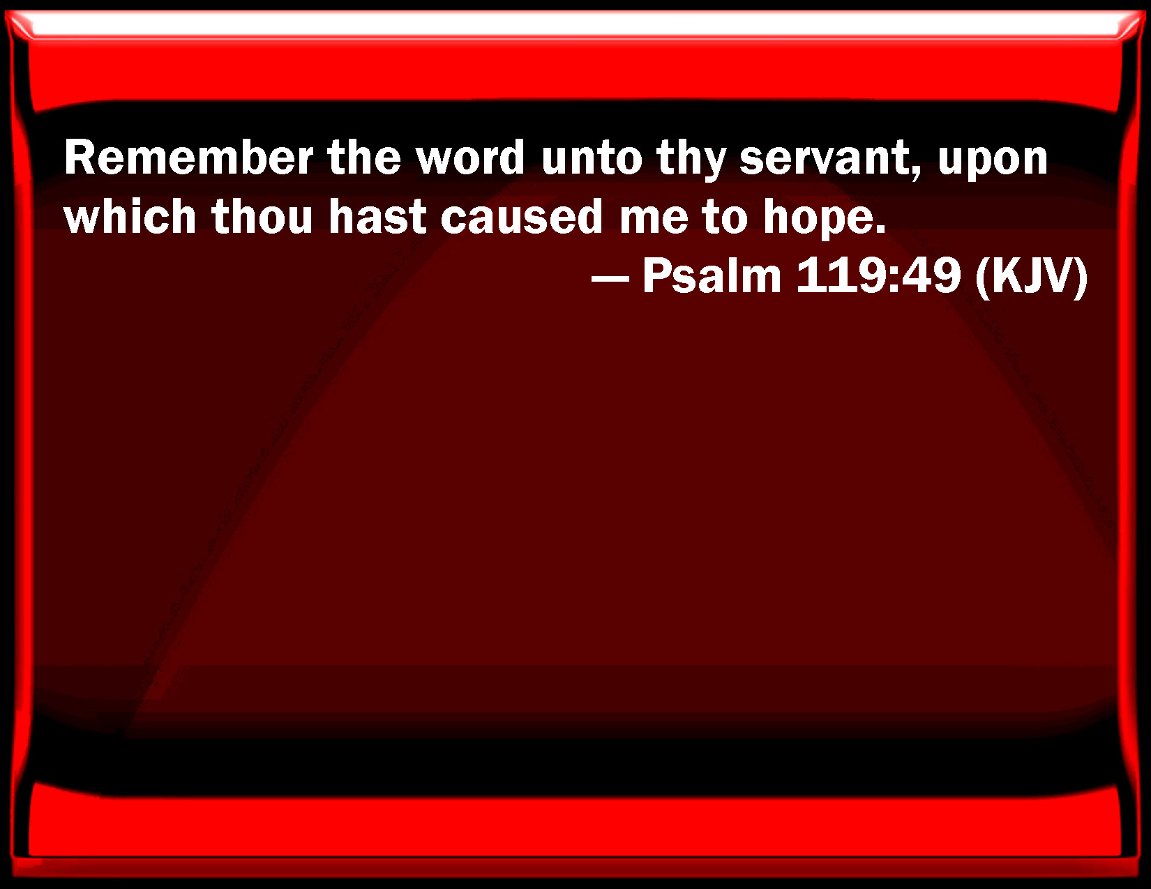 Psalm 119:49 Remember the word to your servant, on which you have caused me to hope.