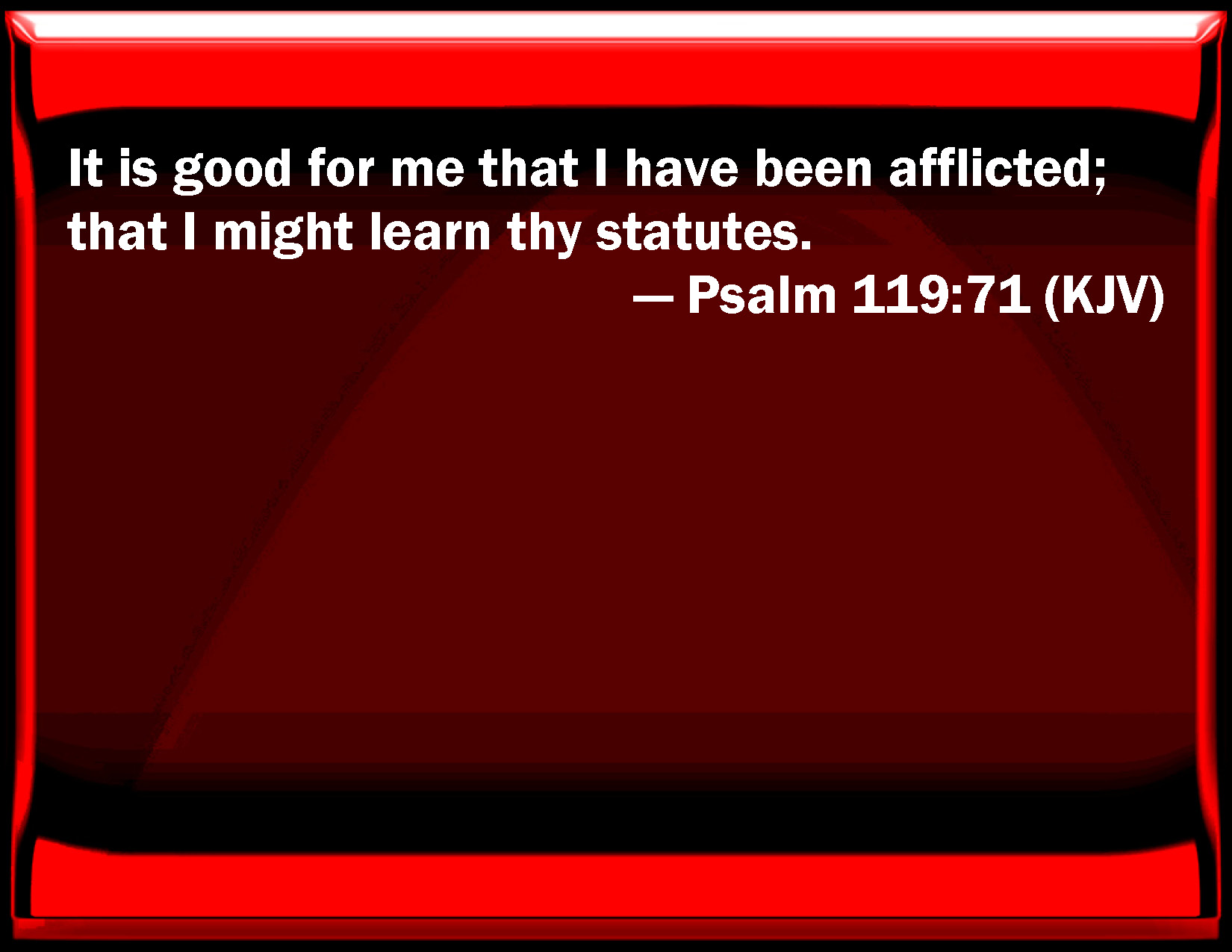 Good for me that I have been afflicted, That I might learn Thy statutes.