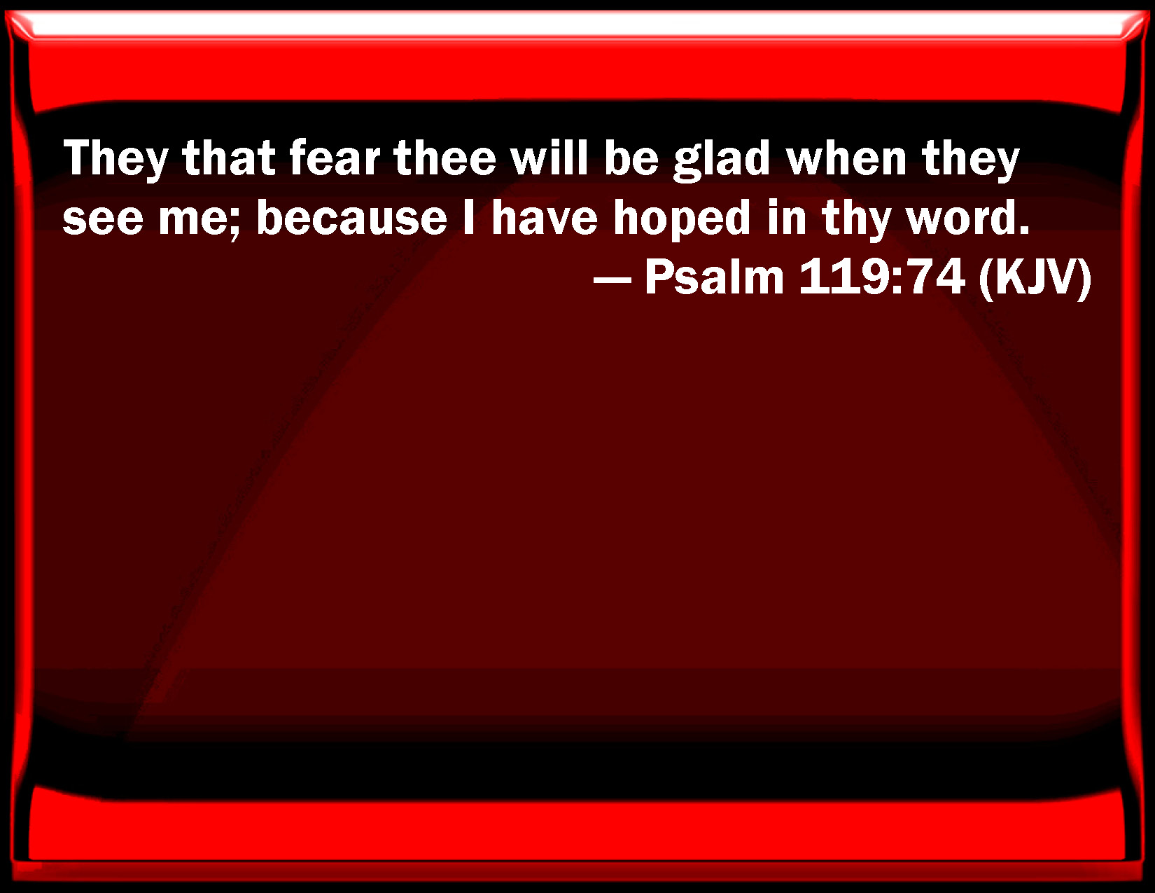 Psalm 119:74 They that fear you will be glad when they see me; because I have hoped in your word.