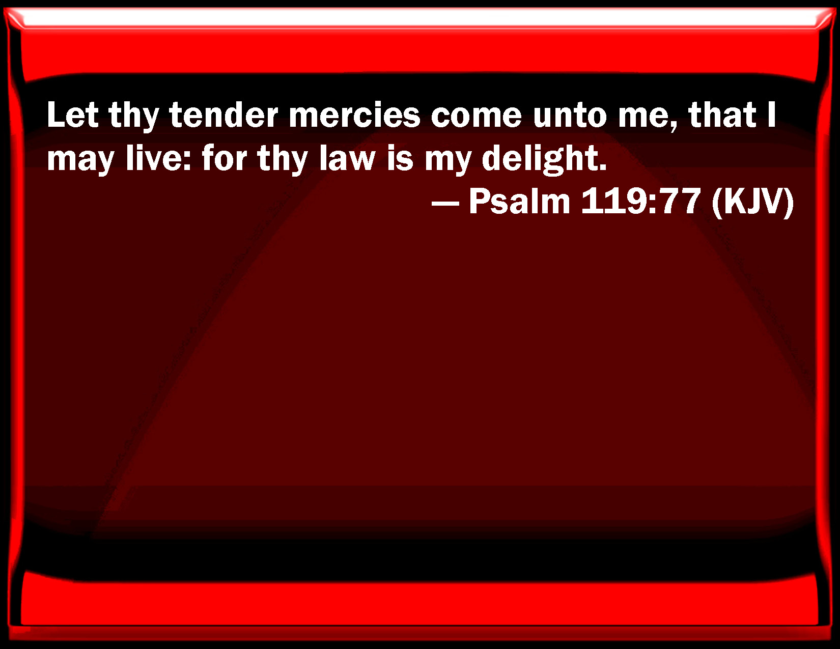 Psalm 119:77 Let your tender mercies come to me, that I may live: for your law is my delight.