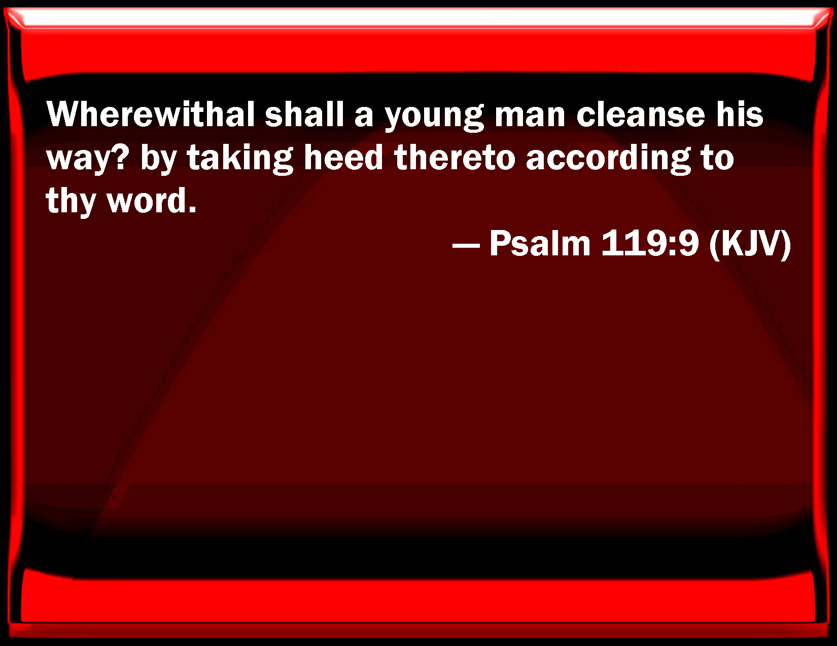 Psalm 119:9 Wherewithal shall a young man cleanse his way? by taking heed thereto according to your word.