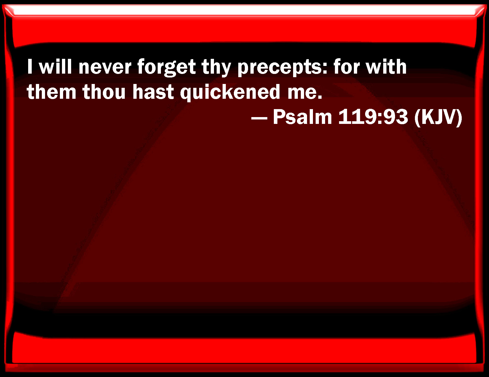 Psalm 119:93 I will never forget your precepts: for with them you have quickened me.