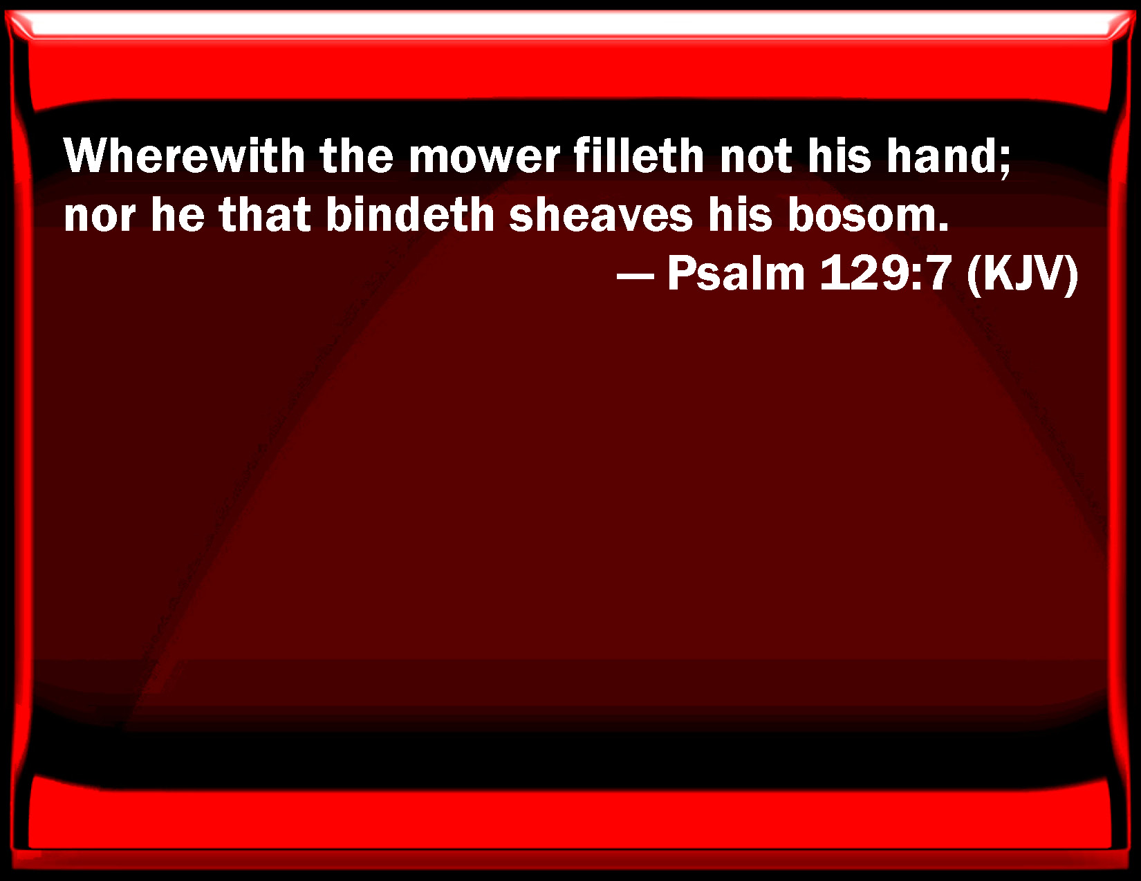 Psalm 129:7 With which the mower fills not his hand; nor he that binds sheaves his bosom.