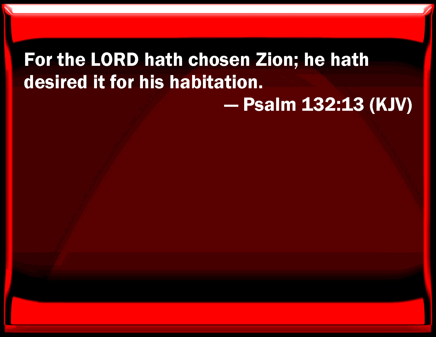 Psalm 132:13 For the LORD has chosen Zion; he has desired it for his habitation.