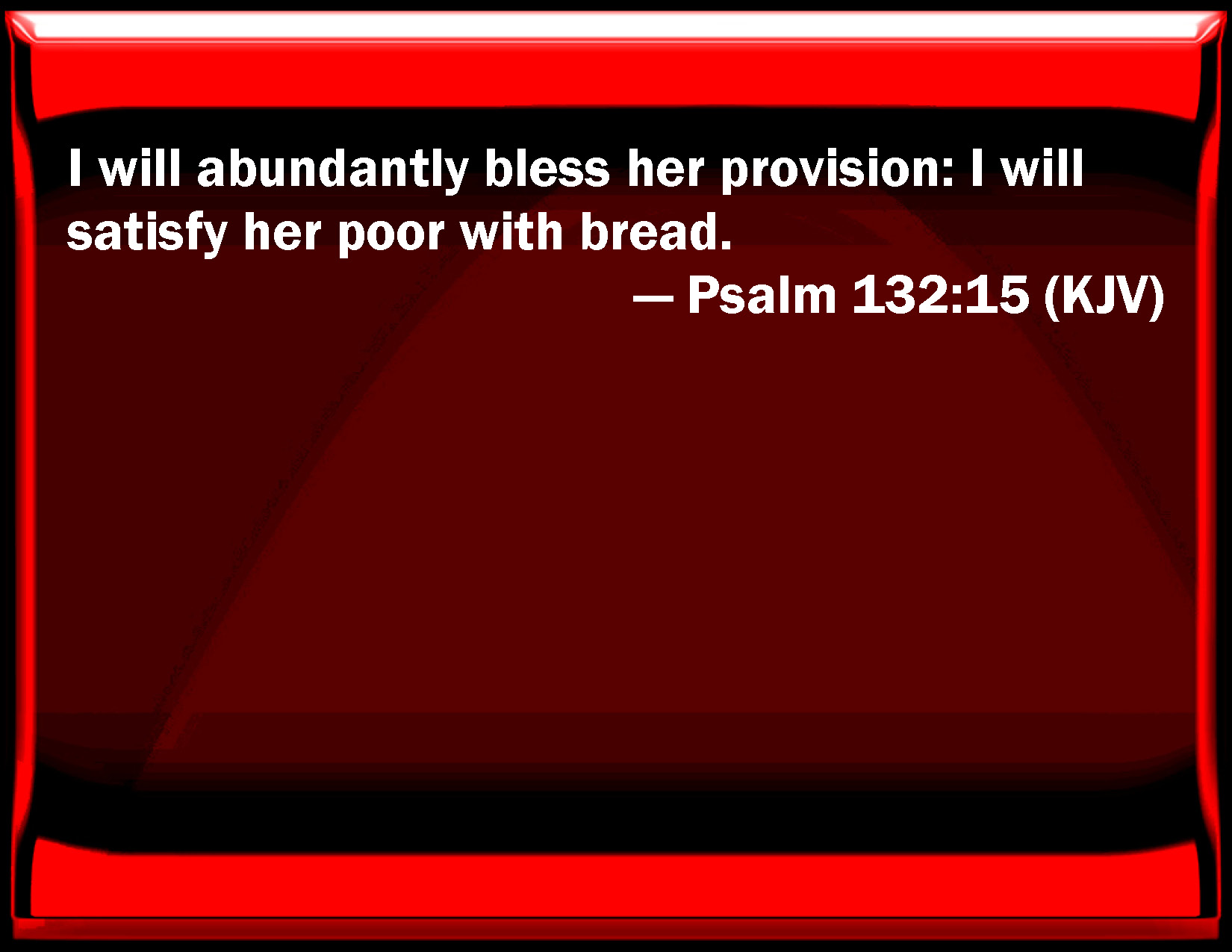 Psalm 132:15 I will abundantly bless her provision: I will satisfy her poor with bread.