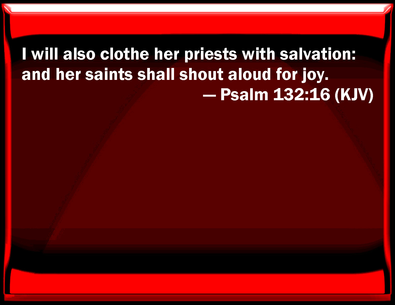 Psalm 132:16 I will also clothe her priests with salvation: and her saints shall shout aloud for joy.