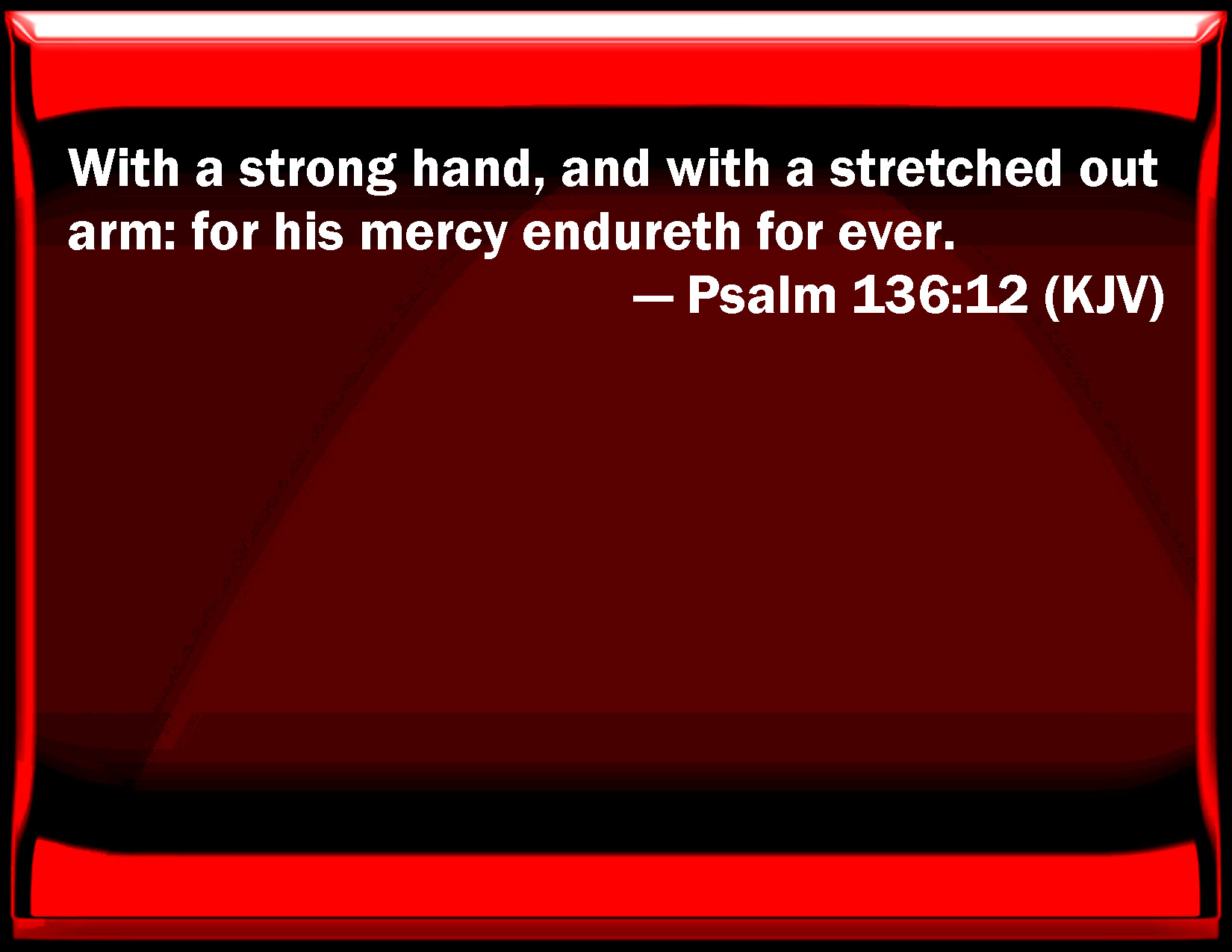 Psalm 136:12 With a strong hand, and with a stretched out arm: for his mercy endures for ever.