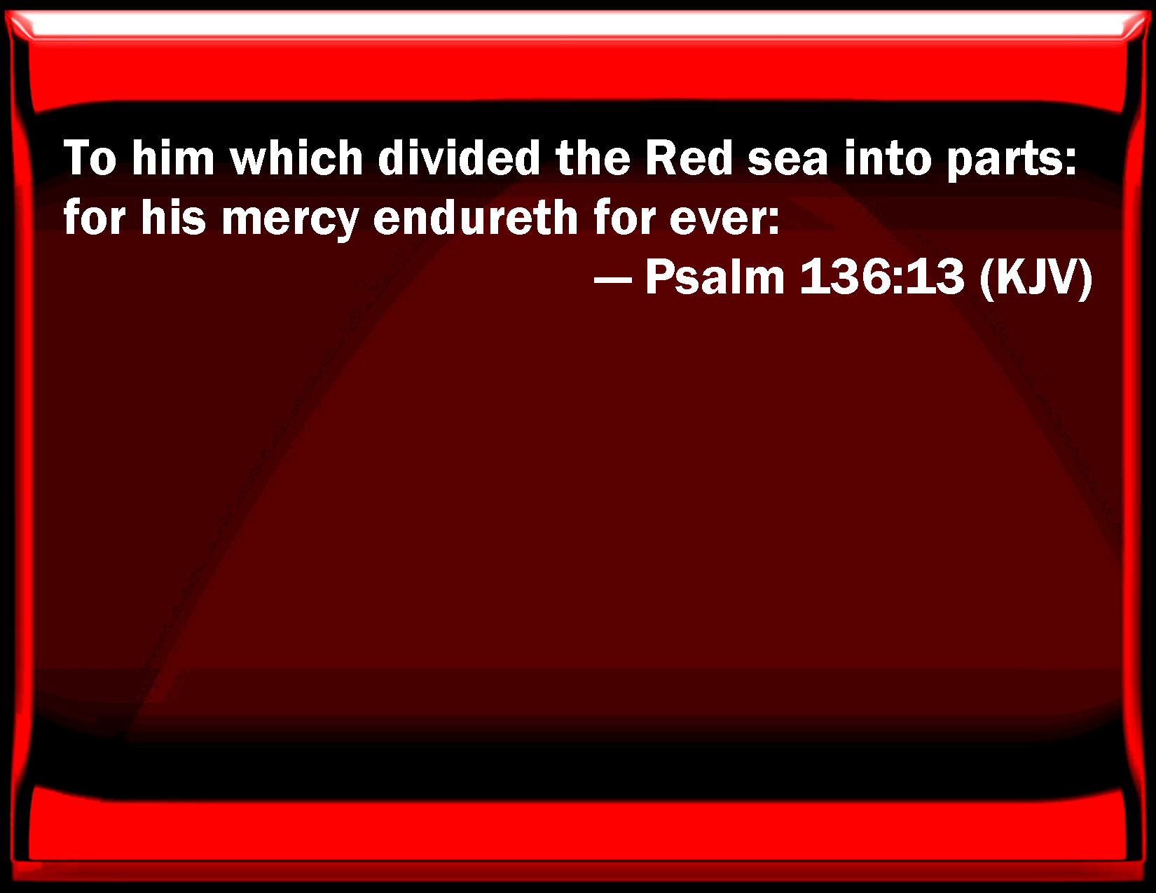 Psalm 136:13 To him which divided the Red sea into parts: for his mercy endures for ever: