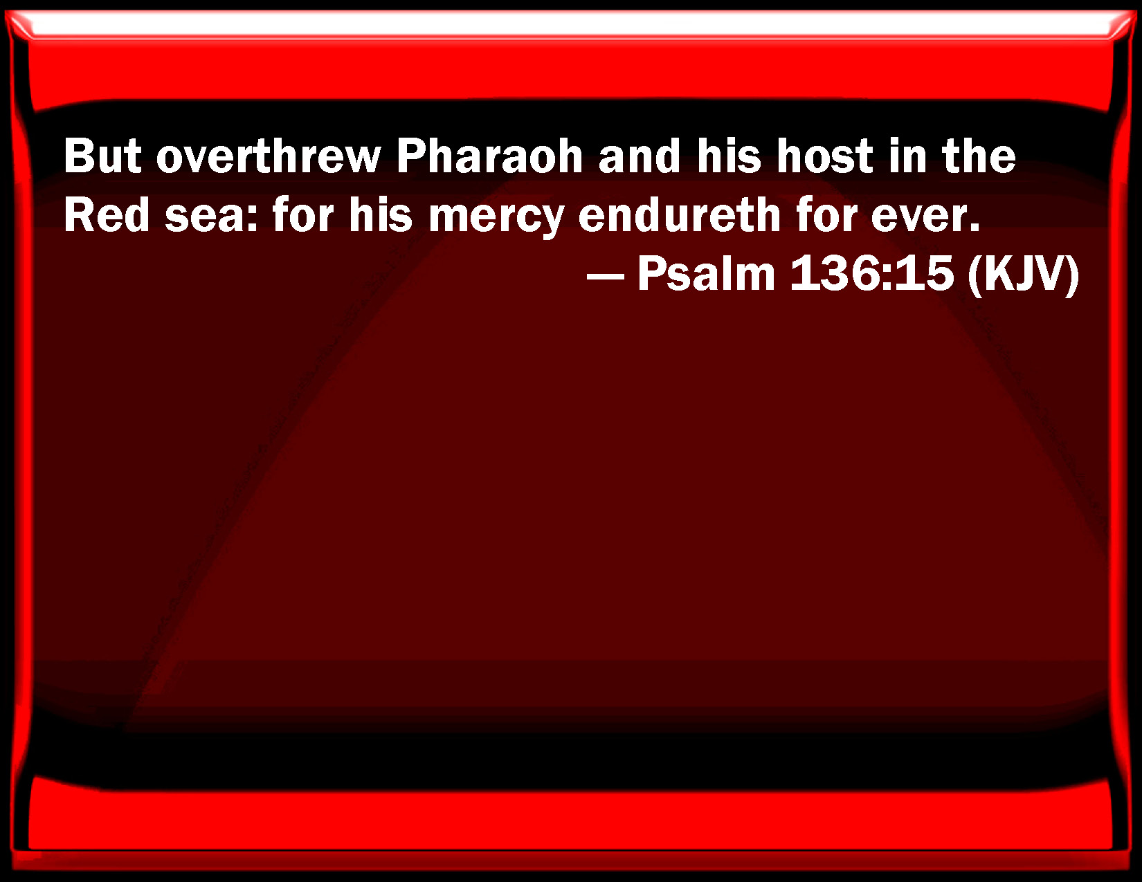 Psalm 136:15 But overthrew Pharaoh and his host in the Red sea: for his mercy endures for ever.
