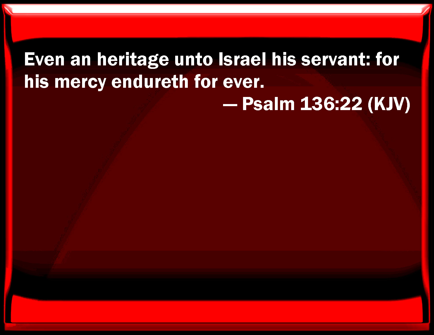 Psalm 136:22 Even an heritage to Israel his servant: for his mercy endures for ever.