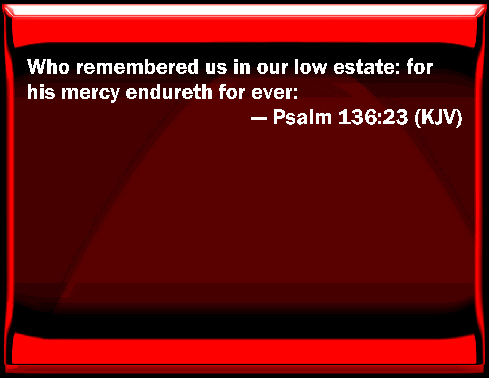 Psalm 136:23 Who remembered us in our low estate: for his mercy endures for ever: