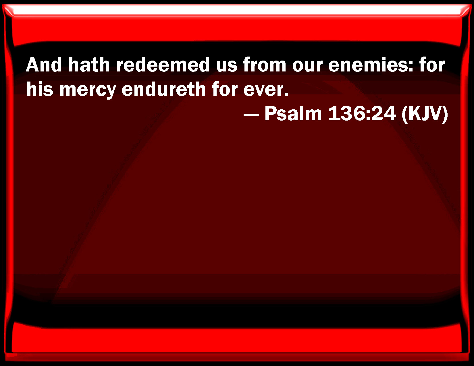 Psalm 136:24 And has redeemed us from our enemies: for his mercy endures for ever.