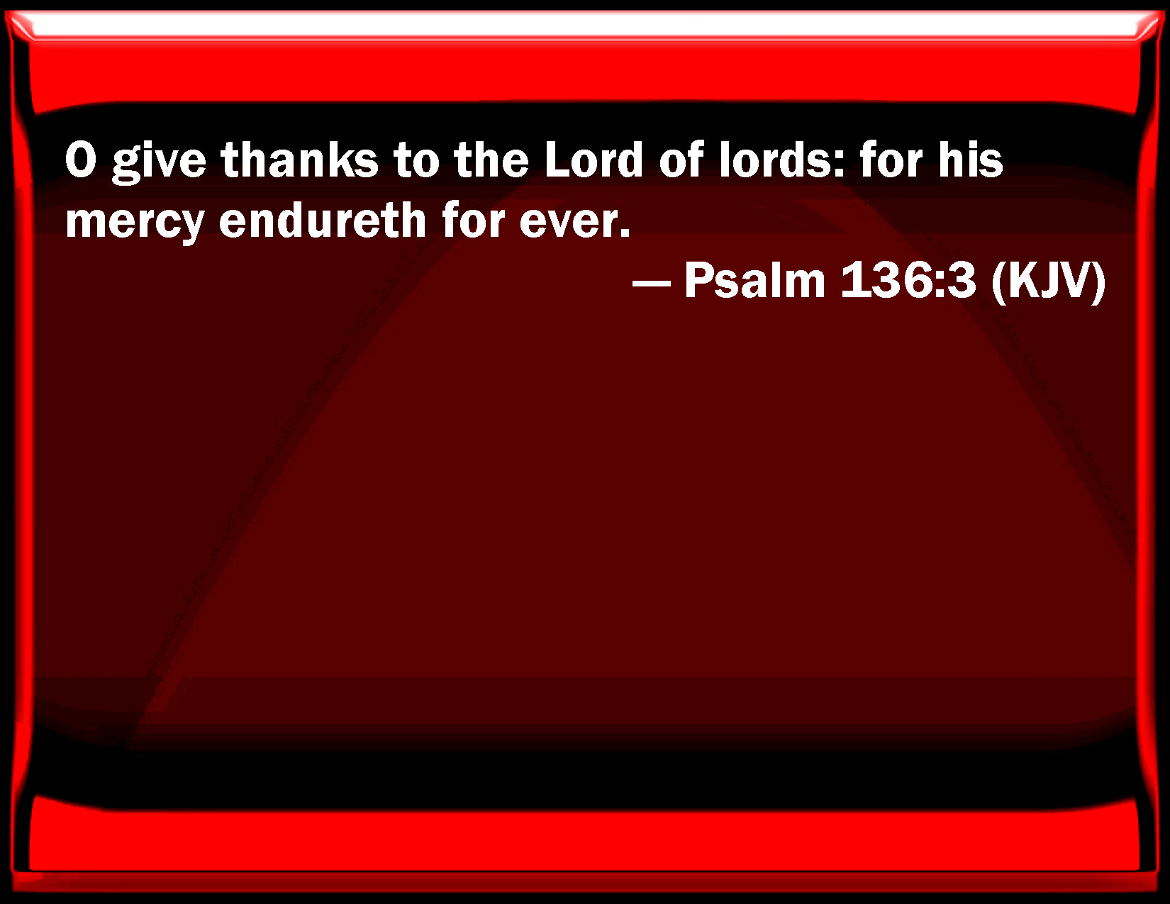 Psalm 136:3 O give thanks to the Lord of lords: for his mercy endures for ever.