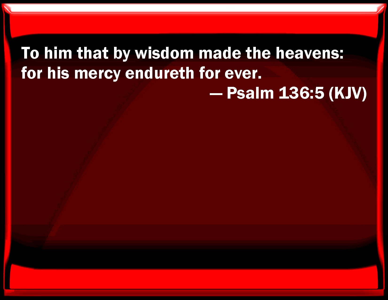 Psalm 136:5 To him that by wisdom made the heavens: for his mercy endures for ever.