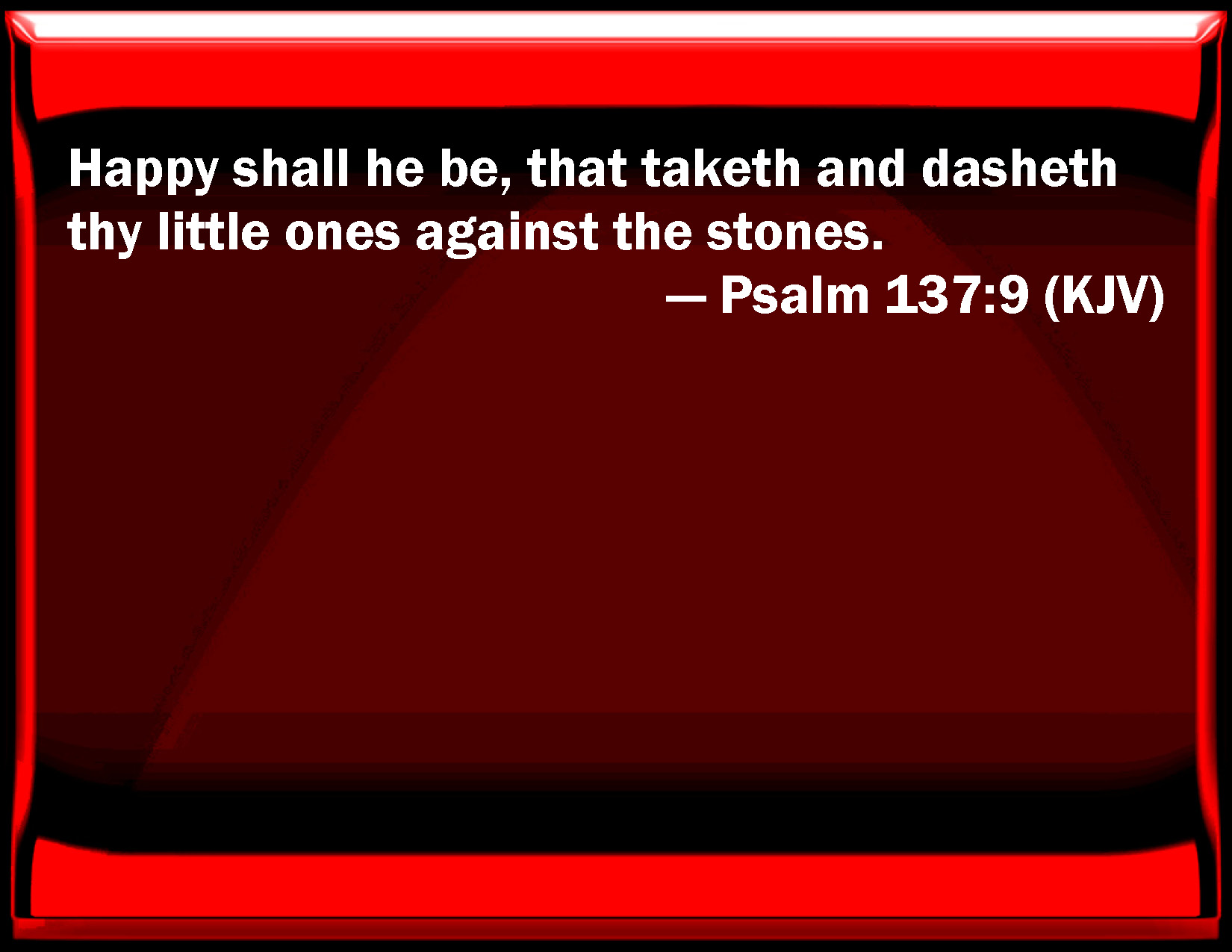 Psalm 137:9 Happy shall he be, that takes and dashes your little ones against the stones.
