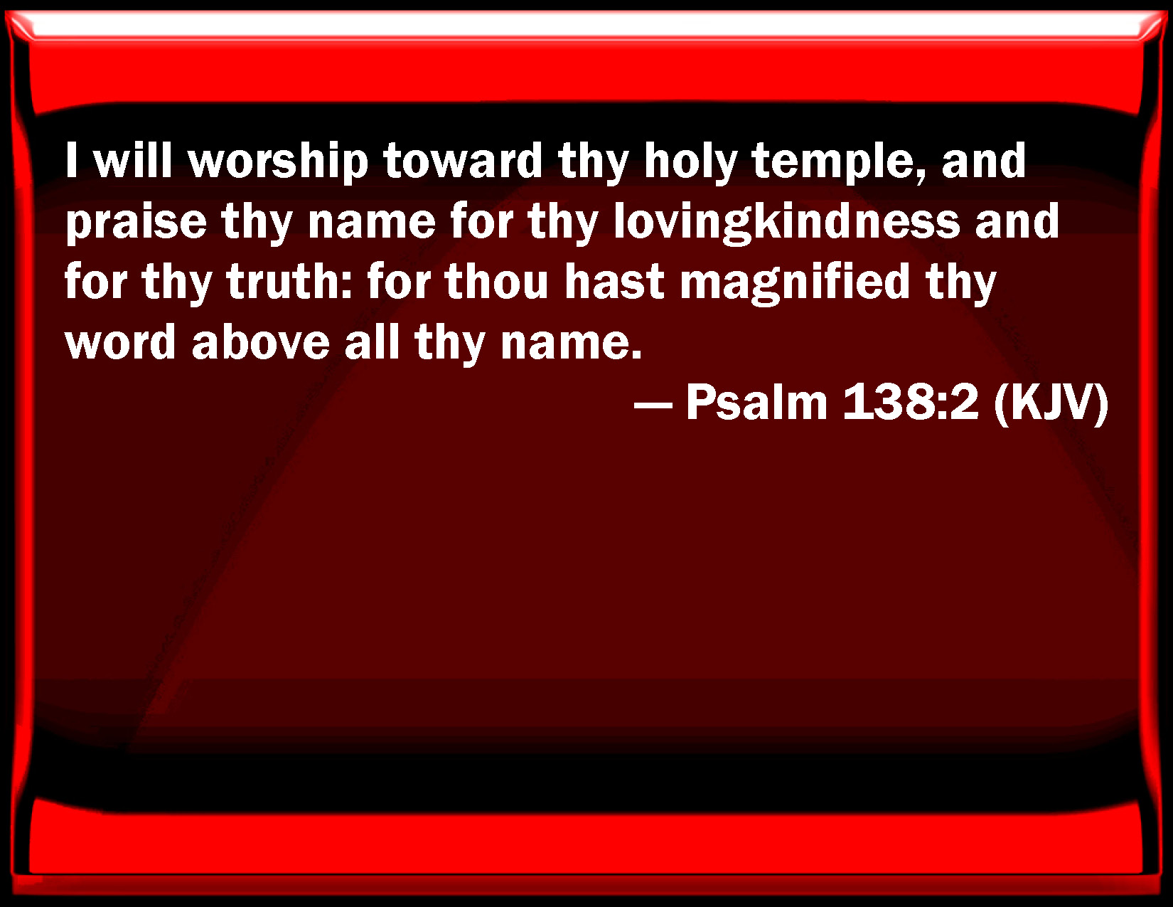 KJV:  I will worship toward thy holy temple, and praise thy name for thy lovingkindness and for thy truth: for thou hast magnified thy word above all thy name.