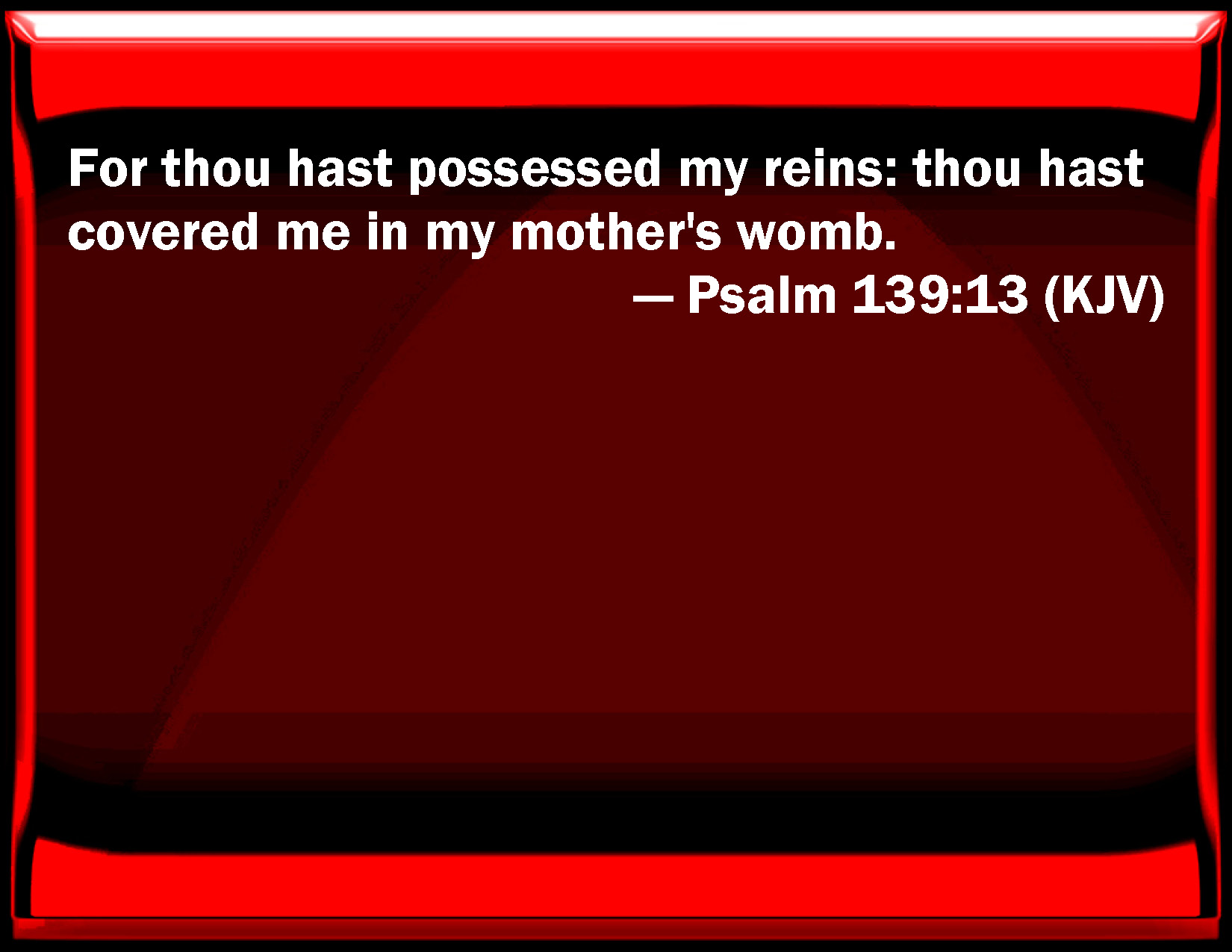 Psalm 139:13 For you have possessed my reins: you have covered me in my mother's womb.