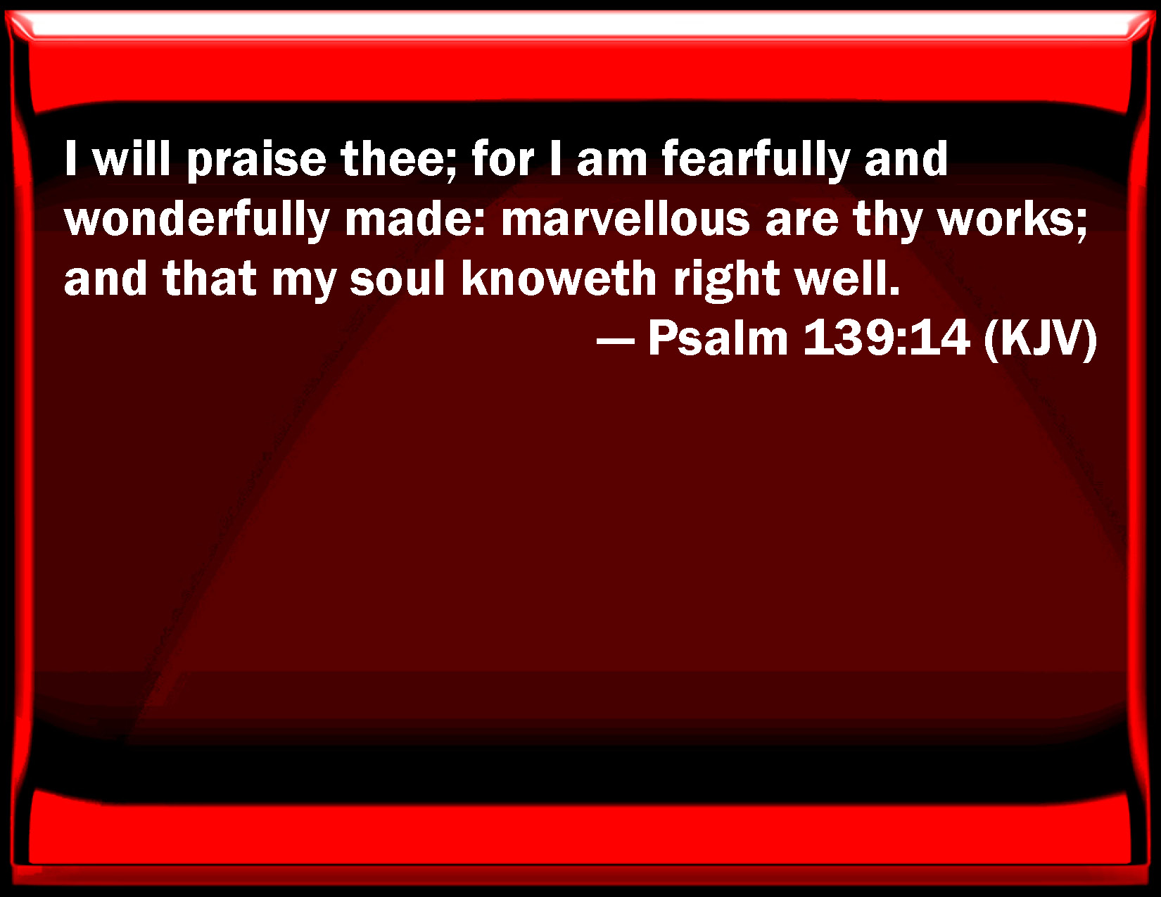 I will give thanks unto thee; for I am fearfully and wonderfully made: wonderful are thy works; and that my soul knoweth right well.