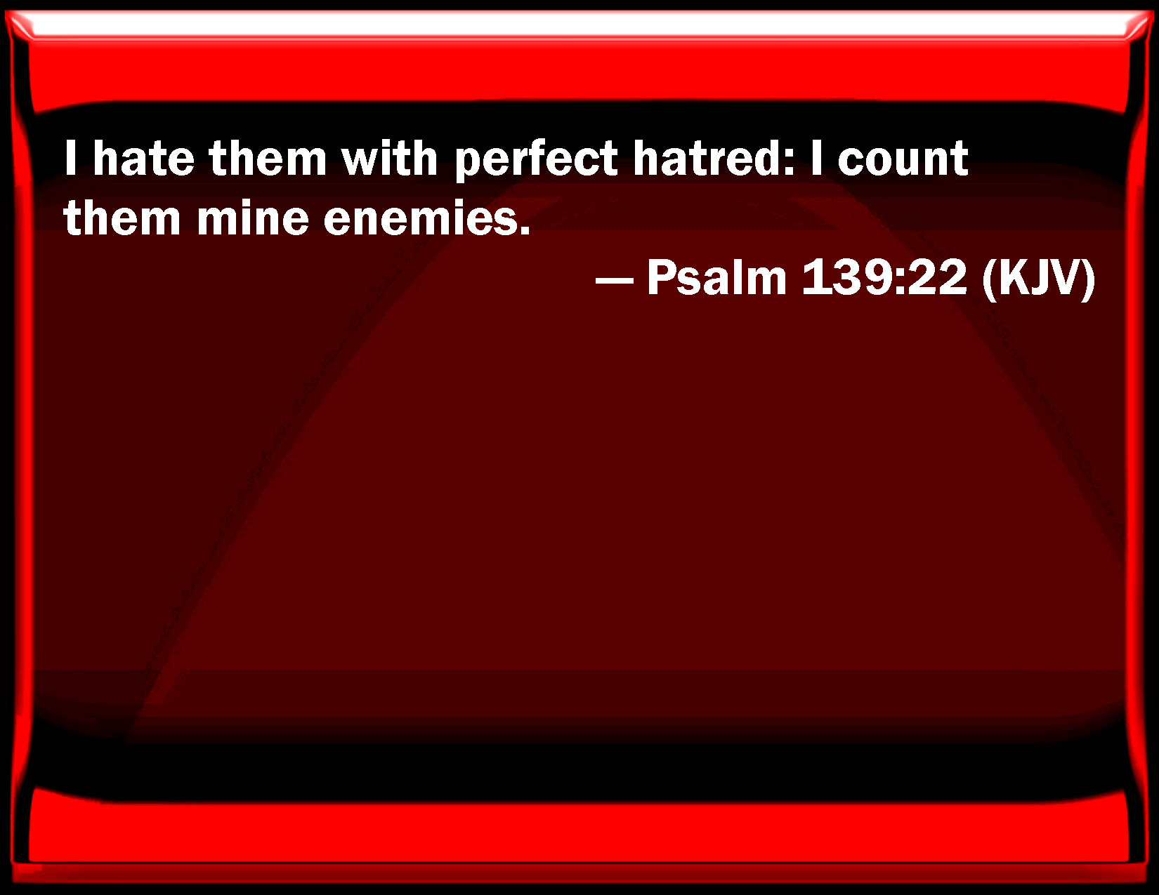Psalm 139:22 I hate them with perfect hatred: I count them my enemies.