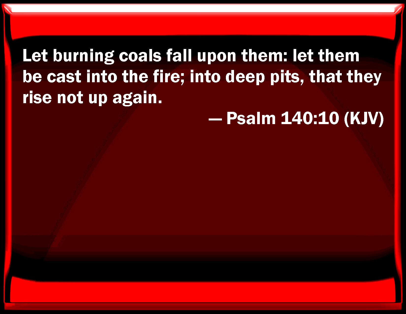 Psalm 140:10 Let burning coals fall on them: let them be cast into the fire; into deep pits, that they rise not up again.