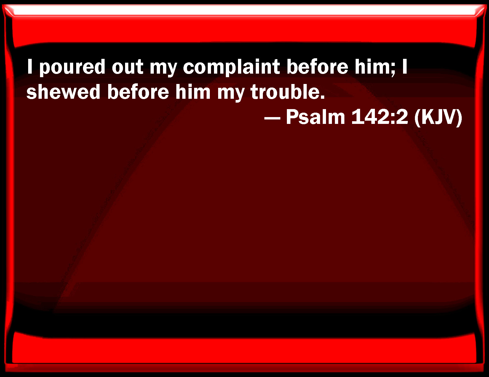 Psalm 142:2 I poured out my complaint before him; I showed before him my trouble.