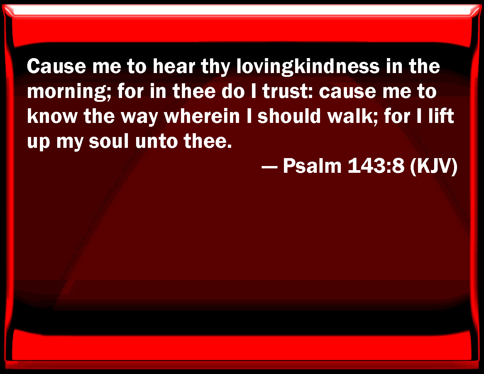 Cause me to hear thy lovingkindness in the morning; for in thee do I trust: cause me to know the way wherein I should walk; for I lift up my soul unto thee.