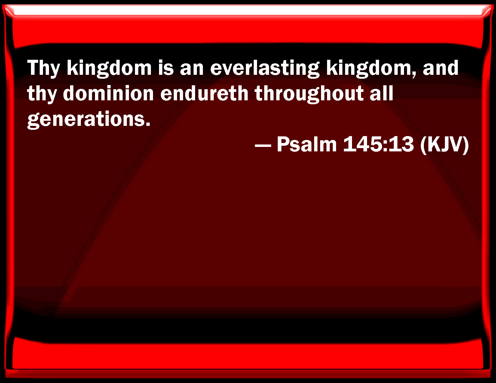 Psalm 145:13 Your kingdom is an everlasting kingdom, and your dominion endures throughout all generations.