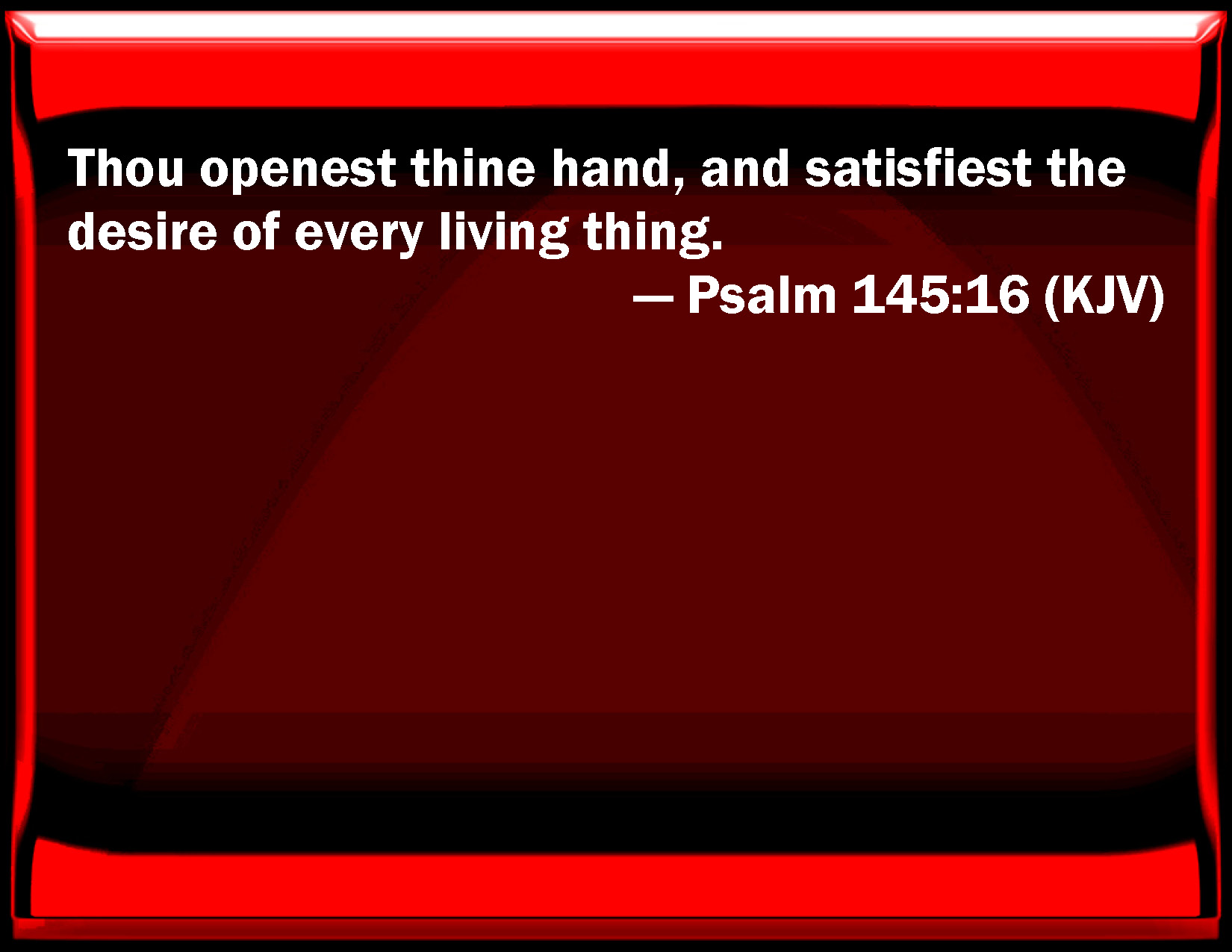 Psalm 145:16 You open your hand, and satisfy the desire of every living thing.