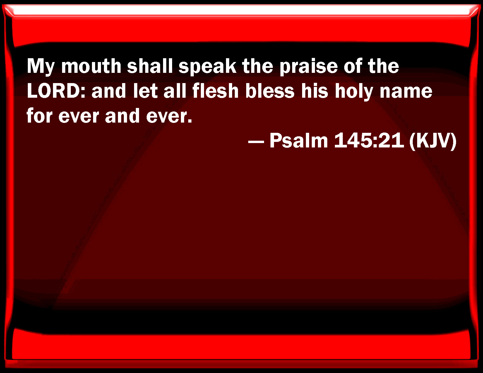 Psalm 145:21 My mouth shall speak the praise of the LORD: and let all flesh bless his holy name for ever and ever.