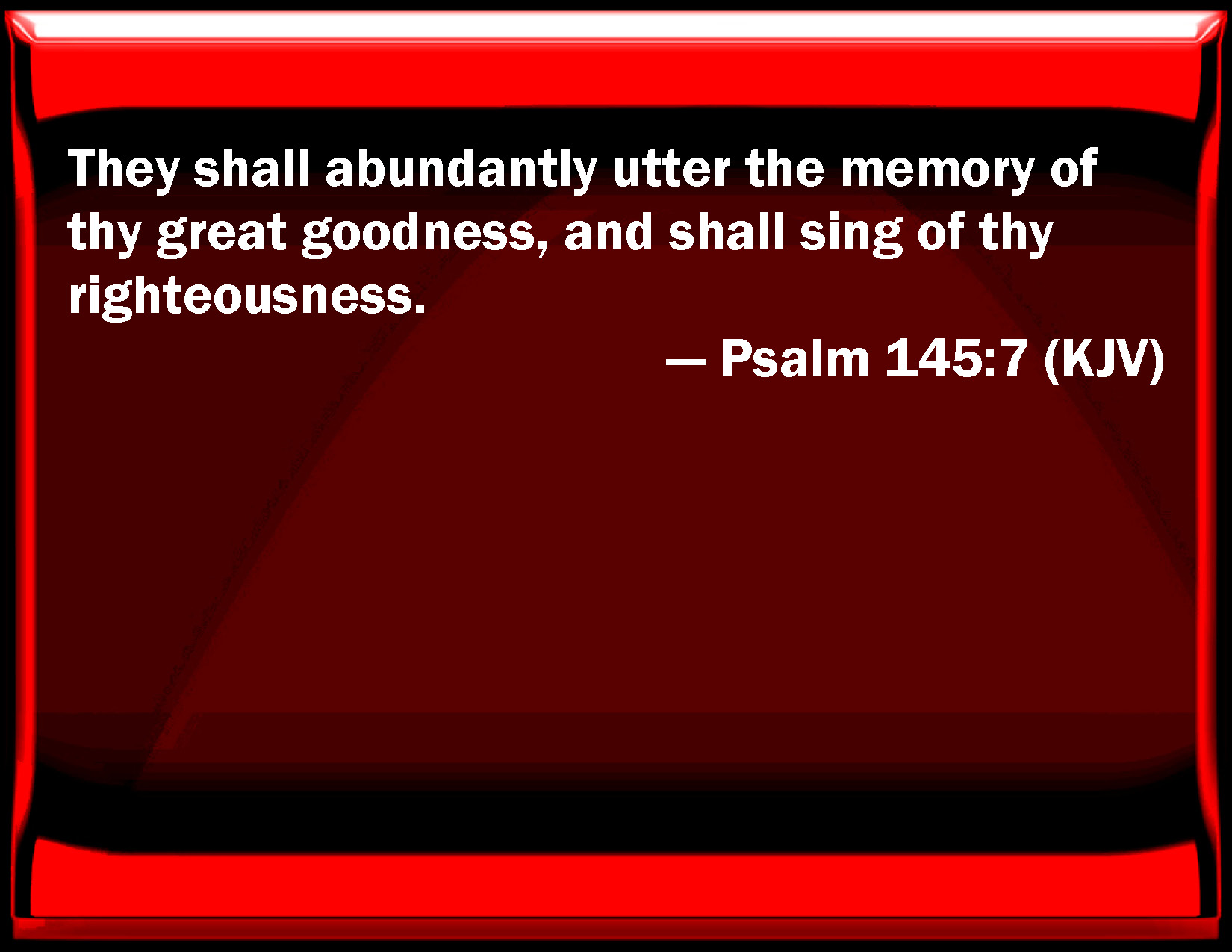 Psalm 145:7 They shall abundantly utter the memory of your great goodness, and shall sing of your righteousness.