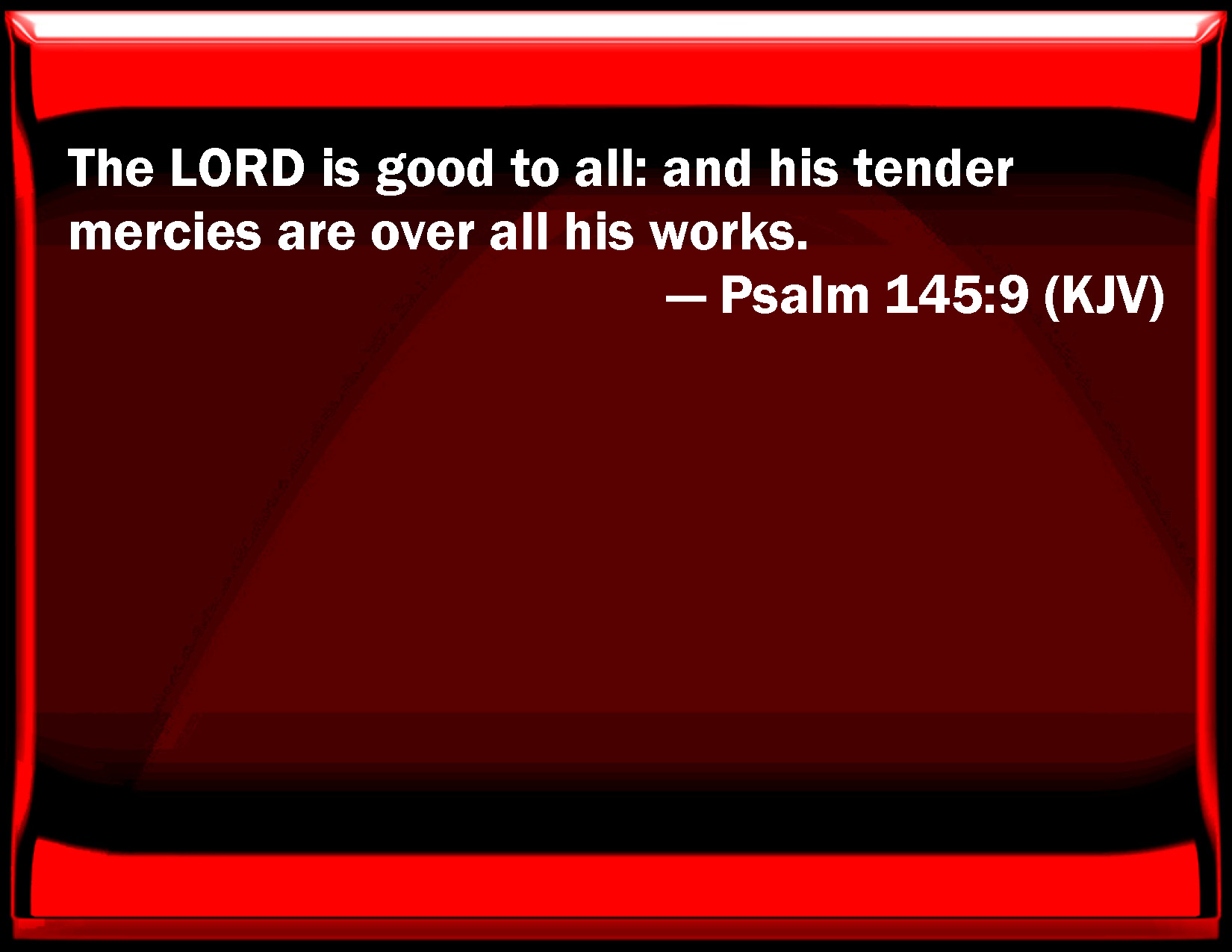 Psalm 145:9 The LORD is good to all: and his tender mercies are over all his works.